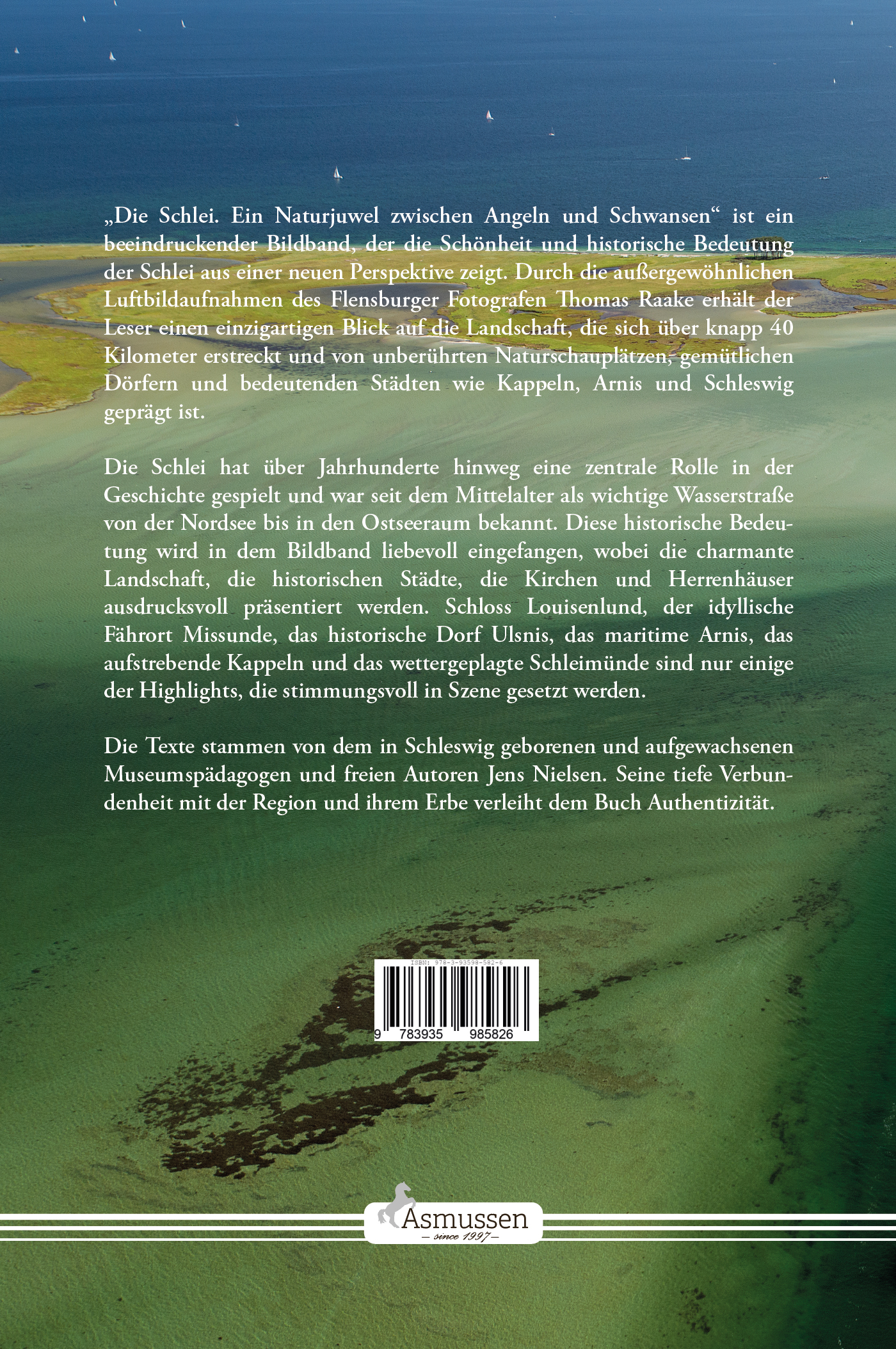 „Die Schlei. Ein Naturjuwel zwischen Angeln und Schwansen“ ist ein beeindruckender Bildband, der die Schönheit und historische Bedeutung der Schlei aus einer neuen Perspektive zeigt. Durch die außergewöhnlichen Luftbildaufnahmen des Flensburger Fotografen Thomas Raake erhält der Leser einen einzigartigen Blick auf die Landschaft, die sich über knapp 40 Kilometer erstreckt und von unberührten Naturschauplätzen, gemütlichen Dörfern und bedeutenden Städten wie Kappeln, Arnis und Schleswig geprägt ist.