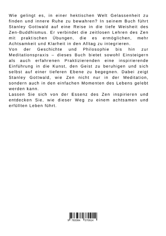 Wie gelingt es, in einer hektischen Welt Gelassenheit zu finden und innere Ruhe zu bewahren? In seinem Buch führt Stanley Gottwald auf eine Reise in die tiefe Weisheit des Zen-Buddhismus. Er verbindet die zeitlosen Lehren des Zen mit praktischen Übungen, die es ermöglichen, mehr Achtsamkeit und Klarheit in den Alltag zu integrieren.Von der Geschichte und Philosophie bis hin zur Meditationspraxis - dieses Buch bietet sowohl Einsteigern als auch erfahrenen Praktizierenden eine inspirierende Einführung in die Kunst, den Geist zu beruhigen und sich selbst auf einer tieferen Ebene zu begegnen. Dabei zeigt Stanley Gottwald, wie Zen nicht nur in der Meditation, sondern auch in den einfachen Momenten des Lebens gelebt werden kann.Lassen Sie sich von der Essenz des Zen inspirieren und entdecken Sie, wie dieser Weg zu einem achtsamen und erfüllten Leben führt.