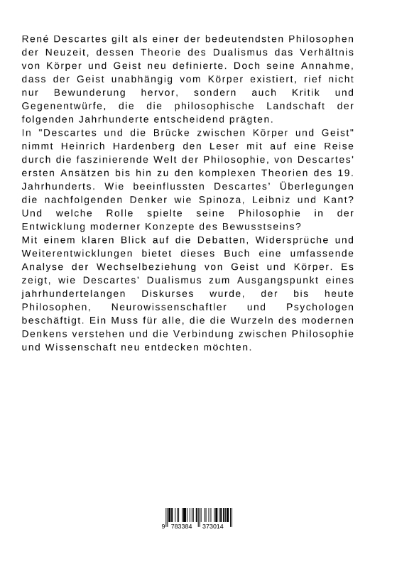 René Descartes gilt als einer der bedeutendsten Philosophen der Neuzeit, dessen Theorie des Dualismus das Verhältnis von Körper und Geist neu definierte. Doch seine Annahme, dass der Geist unabhängig vom Körper existiert, rief nicht nur Bewunderung hervor, sondern auch Kritik und Gegenentwürfe, die die philosophische Landschaft der folgenden Jahrhunderte entscheidend prägten.In "Descartes und die Brücke zwischen Körper und Geist" nimmt Heinrich Hardenberg den Leser mit auf eine Reise durch die faszinierende Welt der Philosophie, von Descartes' ersten Ansätzen bis hin zu den komplexen Theorien des 19. Jahrhunderts. Wie beeinflussten Descartes' Überlegungen die nachfolgenden Denker wie Spinoza, Leibniz und Kant? Und welche Rolle spielte seine Philosophie in der Entwicklung moderner Konzepte des Bewusstseins?Mit einem klaren Blick auf die Debatten, Widersprüche und Weiterentwicklungen bietet dieses Buch eine umfassende Analyse der Wechselbeziehung von Geist und Körper. Es zeigt, wie Descartes' Dualismus zum Ausgangspunkt eines jahrhundertelangen Diskurses wurde, der bis heute Philosophen, Neurowissenschaftler und Psychologen beschäftigt. Ein Muss für alle, die die Wurzeln des modernen Denkens verstehen und die Verbindung zwischen Philosophie und Wissenschaft neu entdecken möchten.