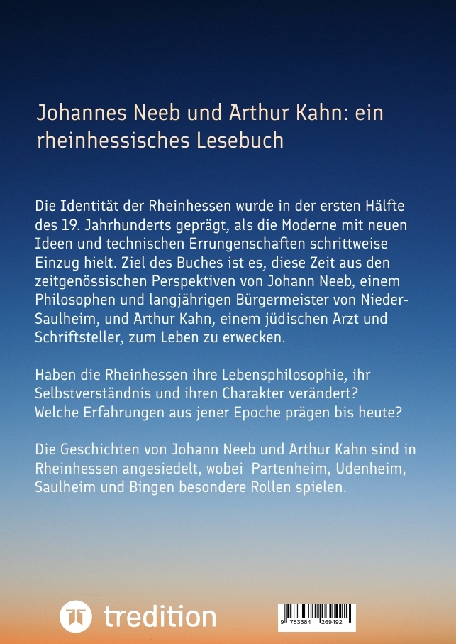 Durch die Texte zweier zeitgenössischer Autoren wird die Geschichte Rheinhessens während der "Franzosenzeit" und des "Biedermeiers" lebendig und aus erster Hand nachvollziehbar. Die Originaltexte werden bewusst vollständig wiedergegeben, um diese Epochen möglichst authentisch erlebbar zu machen. Einführungen, Anmerkungen, Ergänzungen und Biografien bieten zusätzliche Informationen und einen Rahmen.Die beiden Autoren, Johann Neeb (1767-1843), ein katholischer Philosoph, Gutsbesitzer, Bürgermeister und Landtagsabgeordneter, sowie Arthur Kahn (1850-1928), ein jüdischer Arzt und Schriftsteller aus Rheinhessen, zeichneten sich durch ihr literarisches Talent aus. Beide waren aufgeklärte, meinungsstarke Konservative, die im Laufe ihres Lebens zunehmend an religiösen Überzeugungen und Traditionen festhielten und eine tiefe Verbundenheit zu den Menschen auf dem Land in Rheinhessen empfanden. Neebs Werk umfasst eine Vielzahl an Themen, von Philosophie über Landeskunde bis hin zu praktischen Fragen der Landwirtschaft, die er in zwei umfangreichen Sammlungen zusammenstellte. Arthur Kahns Sympathie für die sogenannten Landjuden zeigte sich in nahezu allen seiner Schriften. Diese beschreiben das jüdische Leben in kleinstädtischen Gassen und Dörfern am Rhein und im rheinhessischen Hinterland. Die im Buch enthaltene Erzählung "Die Dorfseele" spielt in Partenheim, von der Zeit Napoleons bis zur Mitte des 19. Jahrhunderts. Sie vermittelt sowohl die anfängliche jüdische Begeisterung für Napoleon als auch dSie vermittelt sowohl die anfängliche jüdische Begeisterung für Napoleon als auch die Leiden, die durch seinen Krieg gegen Russland entstanden.Die Einführungen zu den Texten vermitteln geschichtliche, wirtschaftliche und gesellschaftliche Hintergründe und bieten dabei interessante sowie - hoffentlich - kurzweilige Details; dabei schimmert gelegentlich der naturwissenschaftliche Hintergrund des Autors durch.