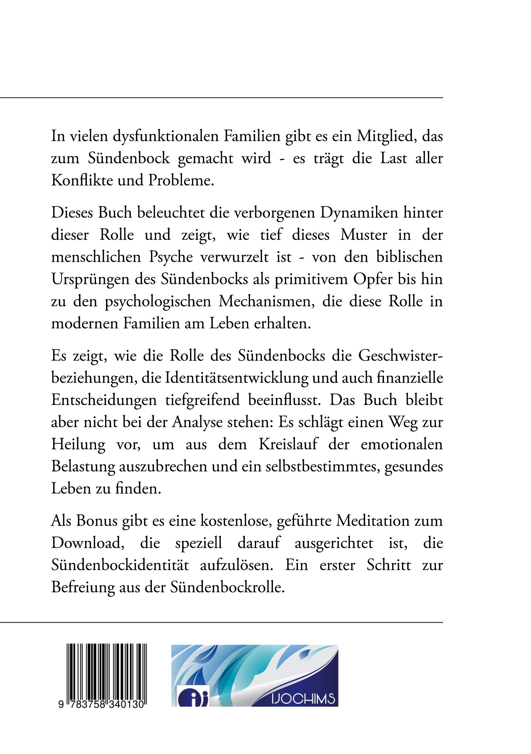 Es zeigt, wie die Rolle des Sündenbocks die Geschwister-beziehungen, die Identitätsentwicklung und auch finanzielle Entscheidungen tiefgreifend beeinflusst. Das Buch bleibt aber nicht bei der Analyse stehen: Es schlägt einen Weg zur Heilung vor, um aus dem Kreislauf der emotionalen Belastung auszubrechen und ein selbstbestimmtes, gesundes Leben zu finden.