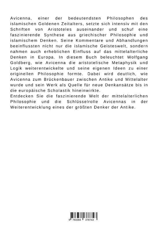 Avicenna, einer der bedeutendsten Philosophen des islamischen Goldenen Zeitalters, setzte sich intensiv mit den Schriften von Aristoteles auseinander und schuf eine faszinierende Synthese aus griechischer Philosophie und islamischem Denken. Seine Kommentare und Abhandlungen beeinflussten nicht nur die islamische Geisteswelt, sondern nahmen auch erheblichen Einfluss auf das mittelalterliche Denken in Europa. In diesem Buch beleuchtet Wolfgang Goldberg, wie Avicenna die aristotelische Metaphysik und Logik weiterentwickelte und seine eigenen Ideen zu einer originellen Philosophie formte. Dabei wird deutlich, wie Avicenna zum Brückenbauer zwischen Antike und Mittelalter wurde und sein Werk als Quelle für neue Denkansätze bis in die europäische Scholastik hineinwirkte.Entdecken Sie die faszinierende Welt der mittelalterlichen Philosophie und die Schlüsselrolle Avicennas in der Weiterentwicklung eines der größten Denker der Antike.