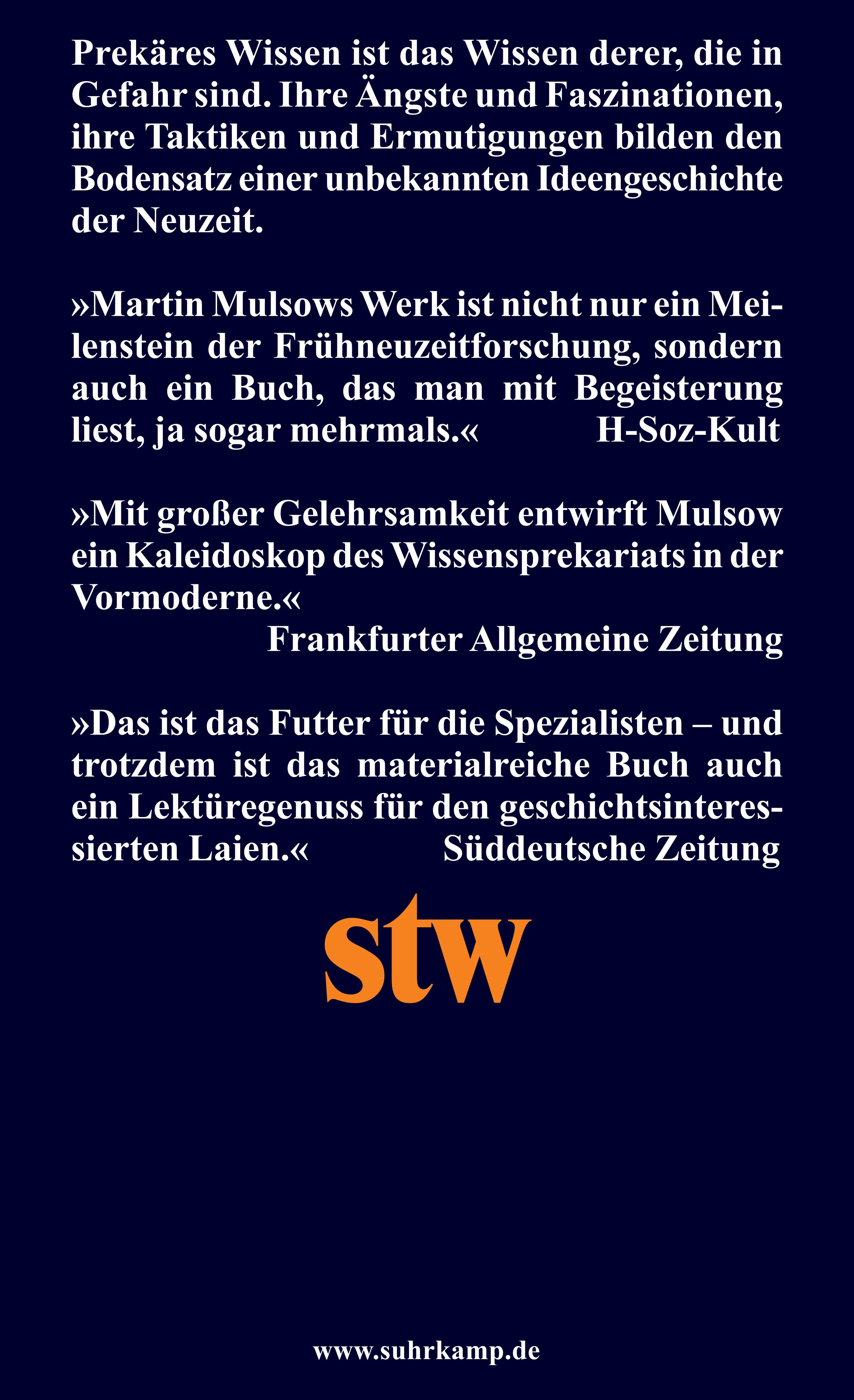 »Glänzend verbindet Mulsow theoretische Anregungen aus der Wissenssoziologie mit ergiebigen Fallstudien, die buchstäblich ins Souterrain der Gelehrsamkeit führen.«