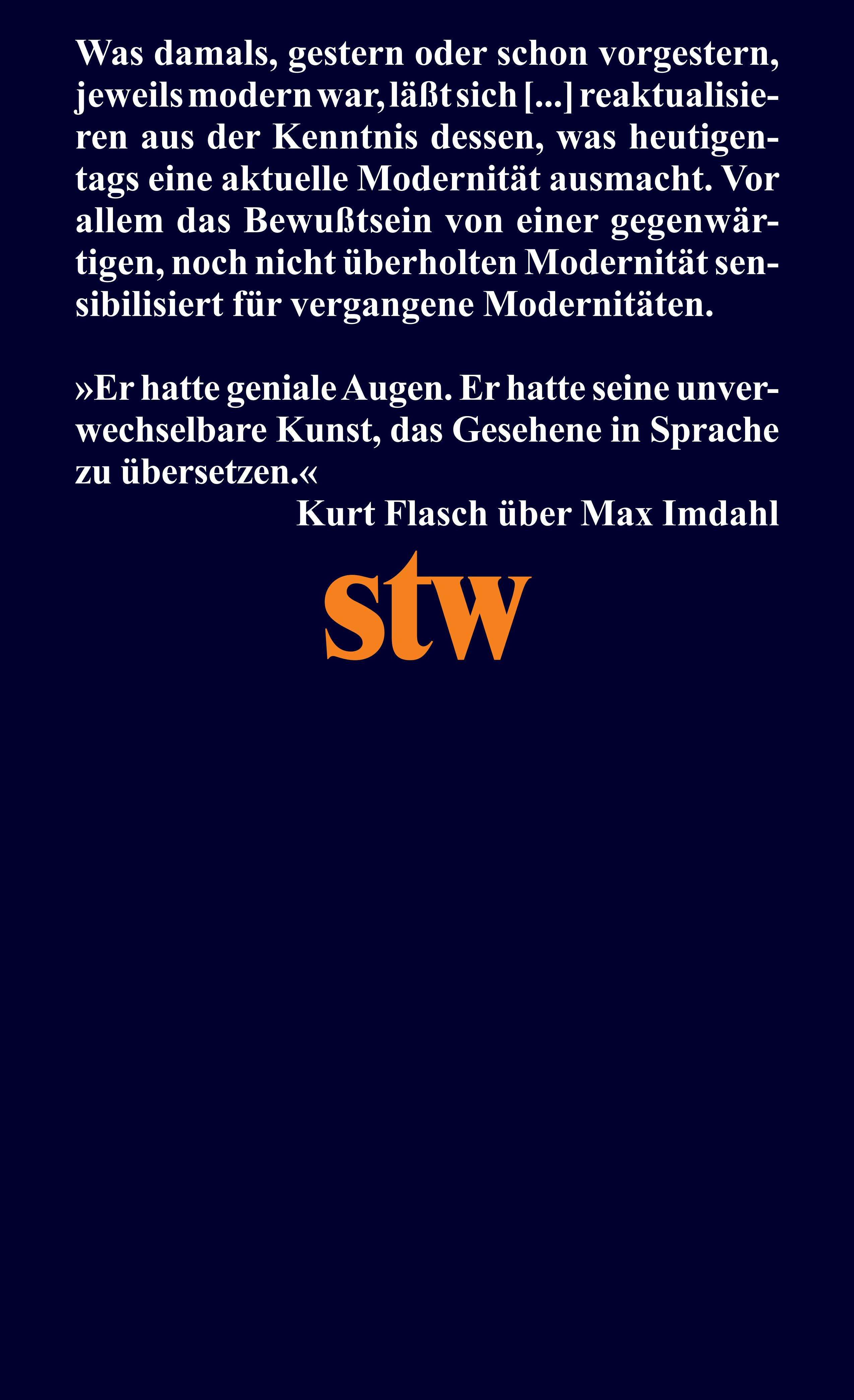 Max Imdahl (1925-1988) war Professor für Kunstgeschichte an der Ruhr-Universität Bochum und Mitglied der Forschungsgruppe »Poetik und Hermeneutik«. 1966 bis 1968 war er im documenta-Rat zur 4. documenta in Kassel 1968. Imdahls Methode der Interpretation, die er auf ein breites Spektrum von Kunstwerken anwandte, ist unter dem von ihm selbst geprägten Begriff »Ikonik« bekannt geworden.