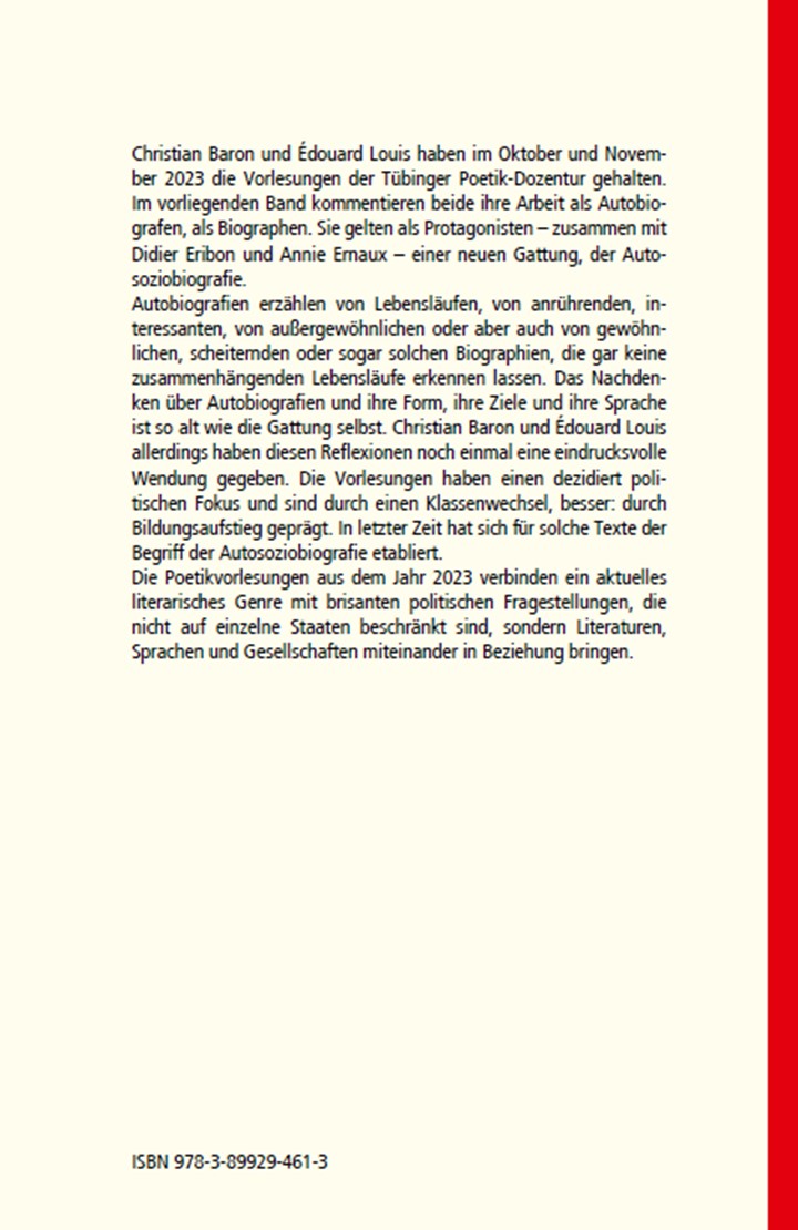 | Schlagworte | Christian Baron • Édouard Louis • Tübinger Poetik Dozentur • Würth Literaturpreis |