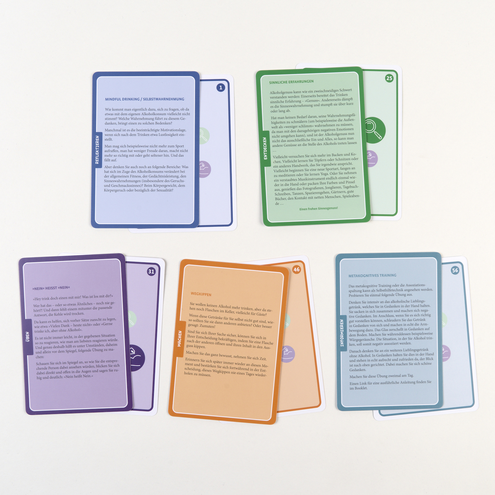 | Schlagworte | Abhängigkeit • Abstinenz • Alkohol • Alkoholabhängigkeit • Alkoholismus • Alkoholmissbrauch • Alkoholproblem • Alkoholtherapie • Beratung • Kartenset • Psychotherapie • Substanzabhängigkeit • Sucht • Suchtbehandlung • Suchttherapie • Therapiekarten • Therapiematerial |