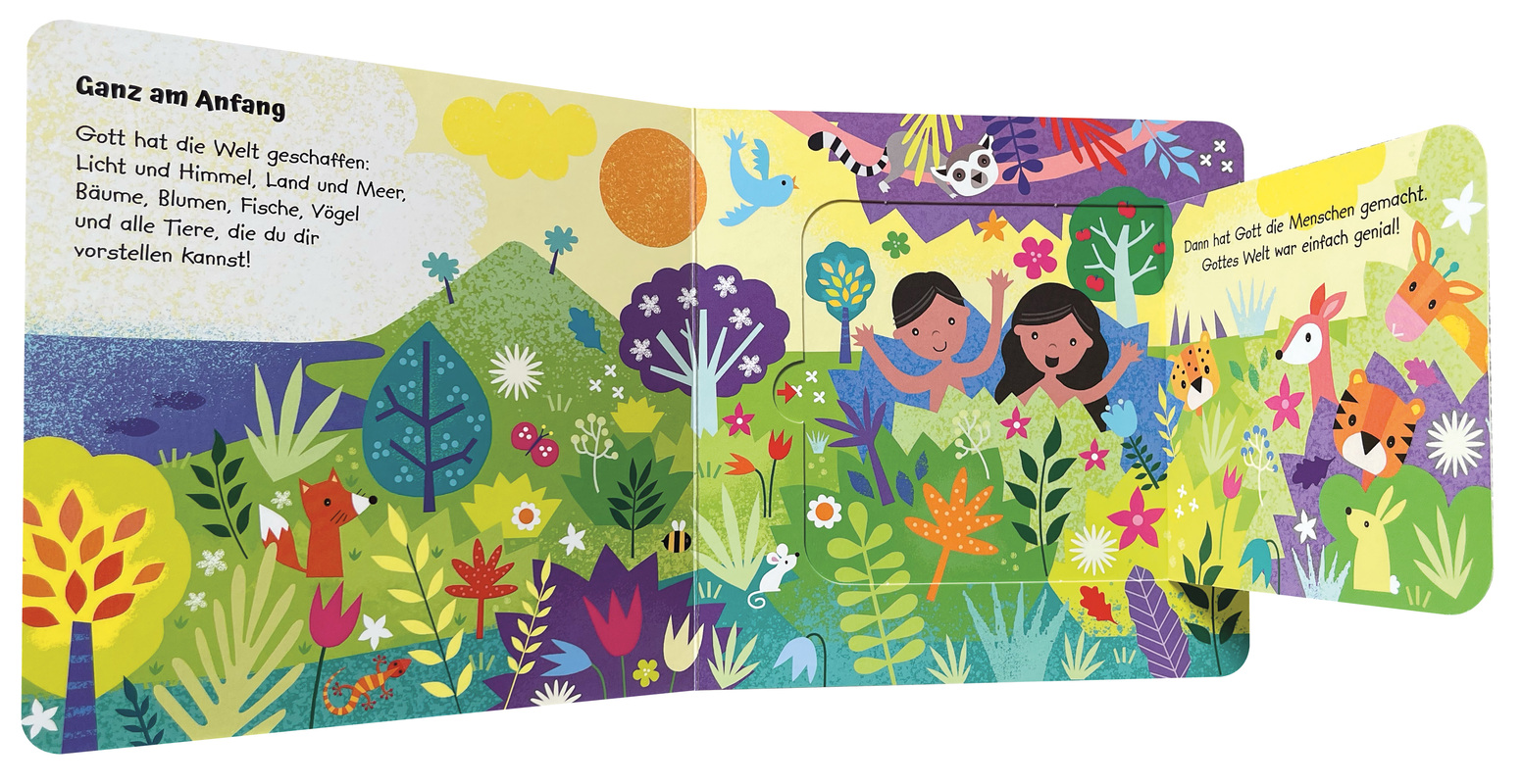 | Schlagworte | Altes Testament • Arche Noah • Biblische Geschichten • Bilderbuch • Daniel in der Löwengrube • Fühlen • für Kleinkinder • Geschenk zur Taufe • interaktives Spielbuch • Jona • Kinderbibel ab 3 Jahren • Kinderbuch ab 2 Jahre • Mose • Motorische Fähigkeiten • Neues Testament • Pappbilderbuch • Schöpfung • zum Mitmachen |