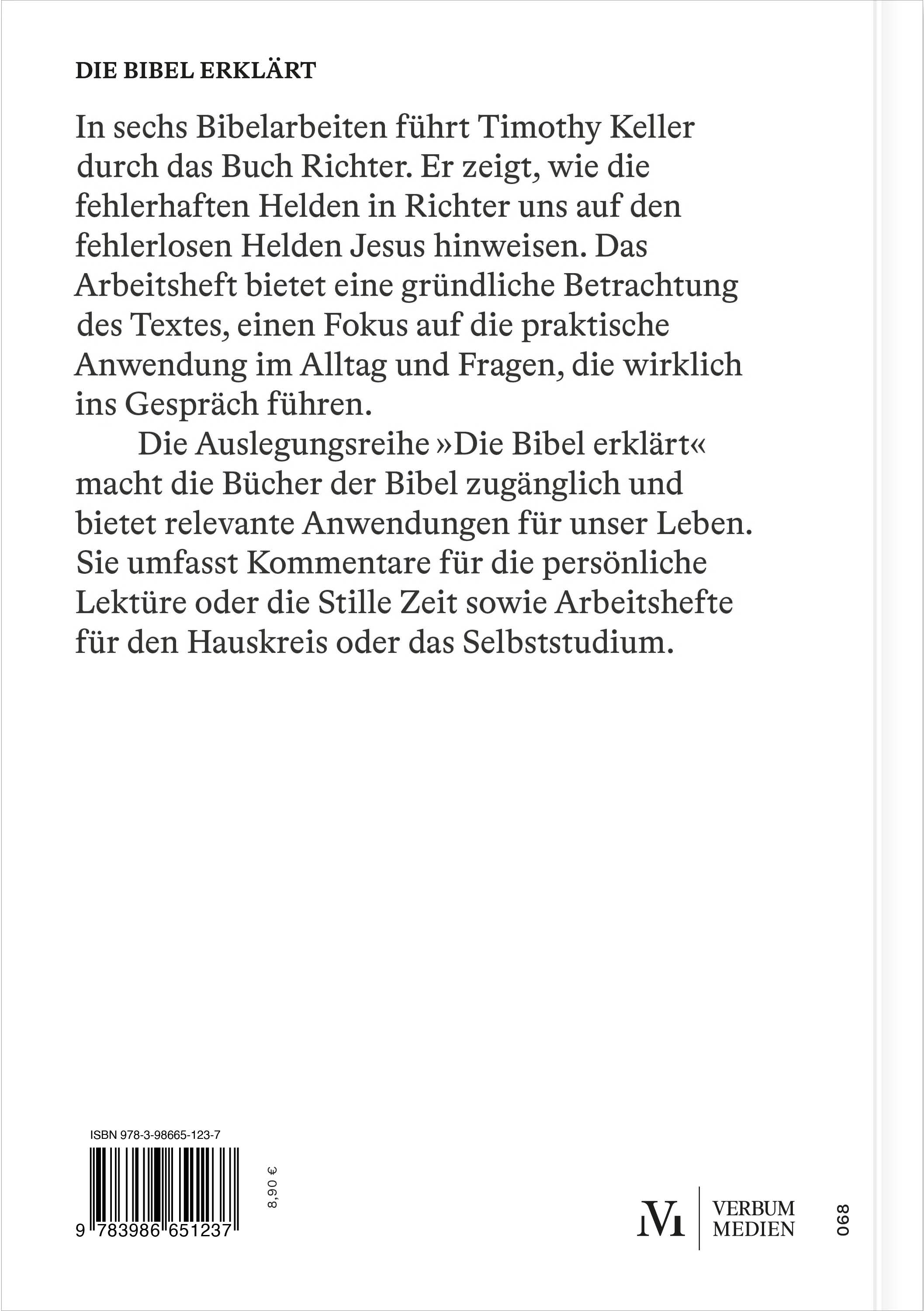In sechs Bibelarbeiten führt Timothy Keller durch das Buch Richter. Er zeigt, wie die fehlerhaften Helden in Richter uns auf den fehlerlosen Helden Jesus hinweisen. Das Arbeitsheft bietet eine gründliche Betrachtung des Textes, einen Fokus auf die praktische Anwendung im Alltag und Fragen, die wirklich ins Gespräch führen.