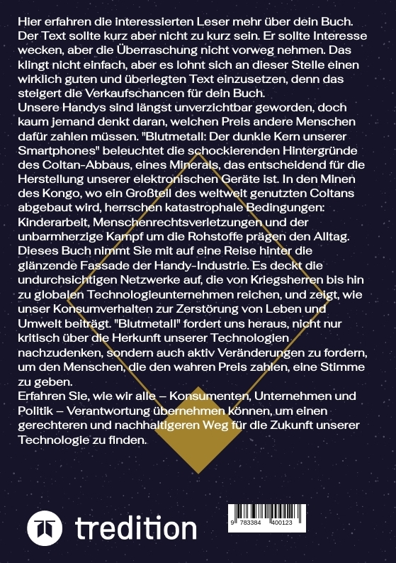 Unsere Handys sind längst unverzichtbar geworden, doch kaum jemand denkt daran, welchen Preis andere Menschen dafür zahlen müssen. "Blutmetall: Der dunkle Kern unserer Smartphones" beleuchtet die schockierenden Hintergründe des Coltan-Abbaus, eines Minerals, das entscheidend für die Herstellung unserer elektronischen Geräte ist. In den Minen des Kongo, wo ein Großteil des weltweit genutzten Coltans abgebaut wird, herrschen katastrophale Bedingungen: Kinderarbeit, Menschenrechtsverletzungen und der unbarmherzige Kampf um die Rohstoffe prägen den Alltag.Dieses Buch nimmt Sie mit auf eine Reise hinter die glänzende Fassade der Handy-Industrie. Es deckt die undurchsichtigen Netzwerke auf, die von Kriegsherren bis hin zu globalen Technologieunternehmen reichen, und zeigt, wie unser Konsumverhalten zur Zerstörung von Leben und Umwelt beiträgt. "Blutmetall" fordert uns heraus, nicht nur kritisch über die Herkunft unserer Technologien nachzudenken, sondern auch aktiv Veränderungen zu fordern, um den Menschen, die den wahren Preis zahlen, eine Stimme zu geben.Erfahren Sie, wie wir alle - Konsumenten, Unternehmen und Politik - Verantwortung übernehmen können, um einen gerechteren und nachhaltigeren Weg für die Zukunft unserer Technologie zu finden.