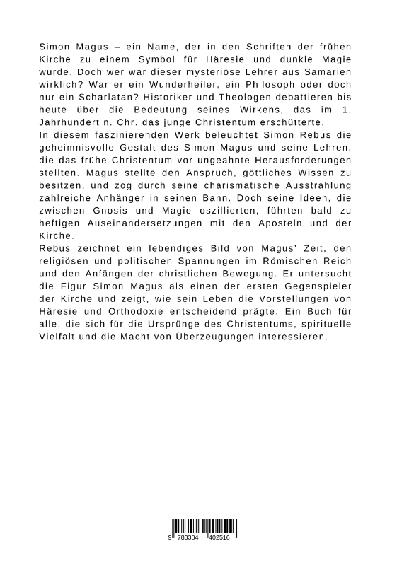 | Schlagworte | Apostelgeschichte • Christentum • Frühchristentum • Gnosis • Ketzerei • Magie • Mystik • Religionskonflikt • Römisches Reich • Simon Magus • Spaltung |