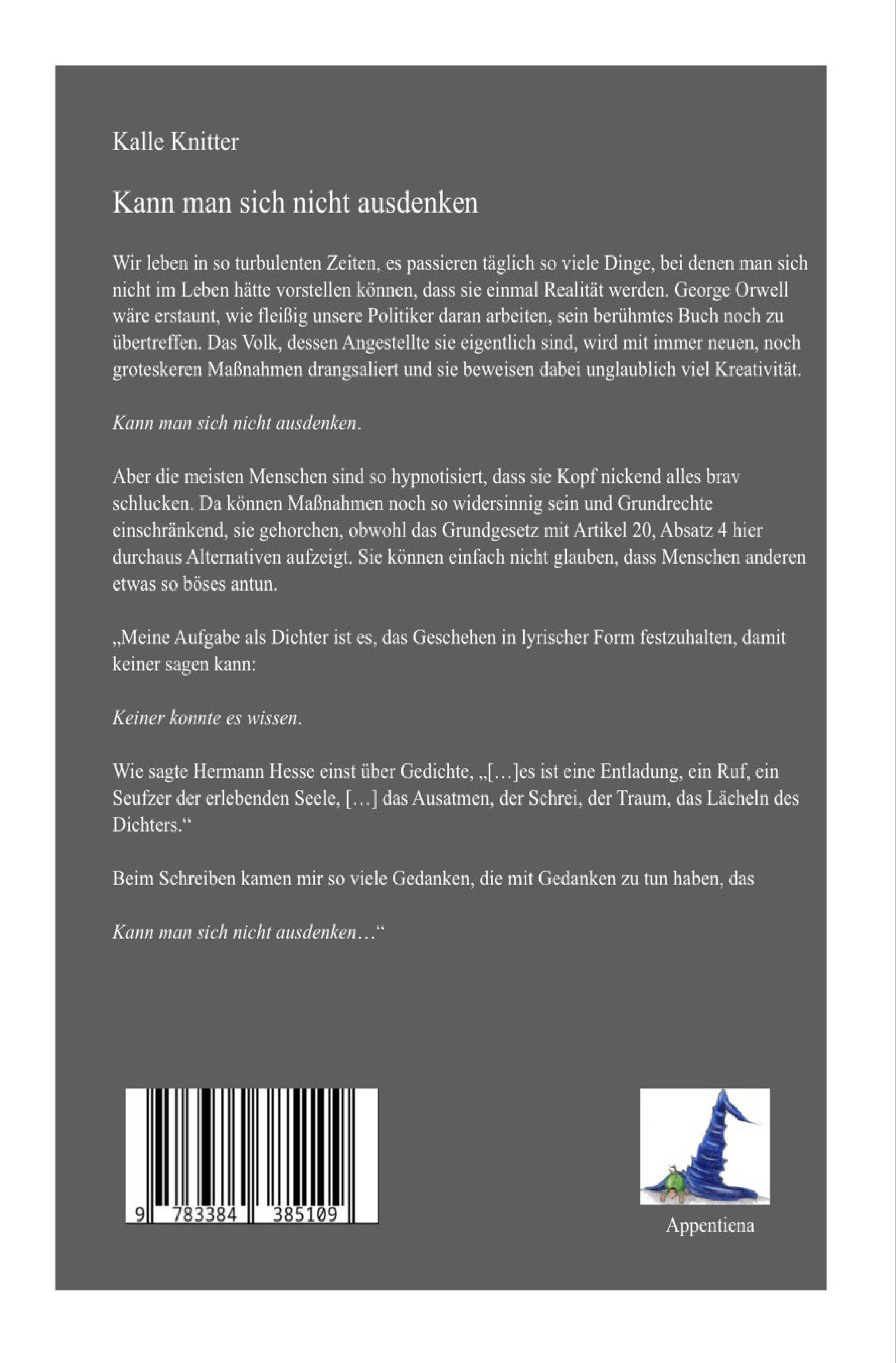 Kalle Knitter begann schon in der Schulzeit, inspiriert u.a. durch Kurt Tucholsky, Erich Kästner, Robert Gernhardt, Boris Vian und Ernst Jandl und animiert durch seinen Deutschlehrer, damit Gedichte und Kurzgeschichten zu schreiben. Als er Vater wurde, kamen Kinderbücher hinzu, bei denen ihn seine eigenen Kinder inspirierten. Diese haben mittlerweile selbst angefangen zu schreiben. Heute lebt und arbeitet er in Nettetal am Niederrhein, wo ein Teil seiner Kinderbücher spielt. -„Die Kinder vom Eäsels Äng“, 2011, katercom, 2016 epubli -„Die schlauen Lupen Band I – Übergabe im Ingenhovenpark“ , 2012, -„Die kleine Zauberin Ronja und das Buch Galinda“, 2013, beide bei edition winterwork. -„Die schlauen Lupen Band II – In den Ruinen der Textilfabrik“, 2014 bei epubli -„Lyrik- läuft die dir“, 2014 bei epubli -„Am roten Ufer- nach Leipzig“, 2021 bei epubli - "Keiner konnte es wissen", 2023 bei Appentiena