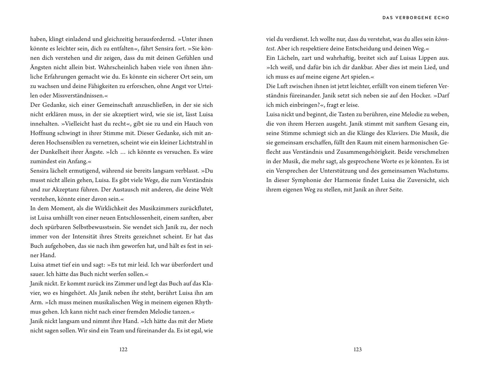 Hinweis zur OptimierungImpressumFinde das Leuchten in dir!EinleitungKapitel 1: LuisaKapitel 2: Ein Universum der FeinfühligkeitKapitel 3: Zwischen Angst und HoffnungKapitel 4: Das Flüstern des ÄthersKapitel 5: SinnestiefeKapitel 6. Die Last und das LichtKapitel 7: HerzschwingungKapitel 8: Im Einklang mit dir selbstKapitel 9: Das verborgene EchoKapitel 10: Das Mosaik der BegabungKapitel 11: Kosmische IntuitionKapitel 12: Die Verbindung in die AndersweltKapitel 13: Die Antagonisten des AlltagsKapitel 14: Bitte bleib nicht so, wie du bistKapitel 15: Luisas MelodieEpilogMiriam Sompek