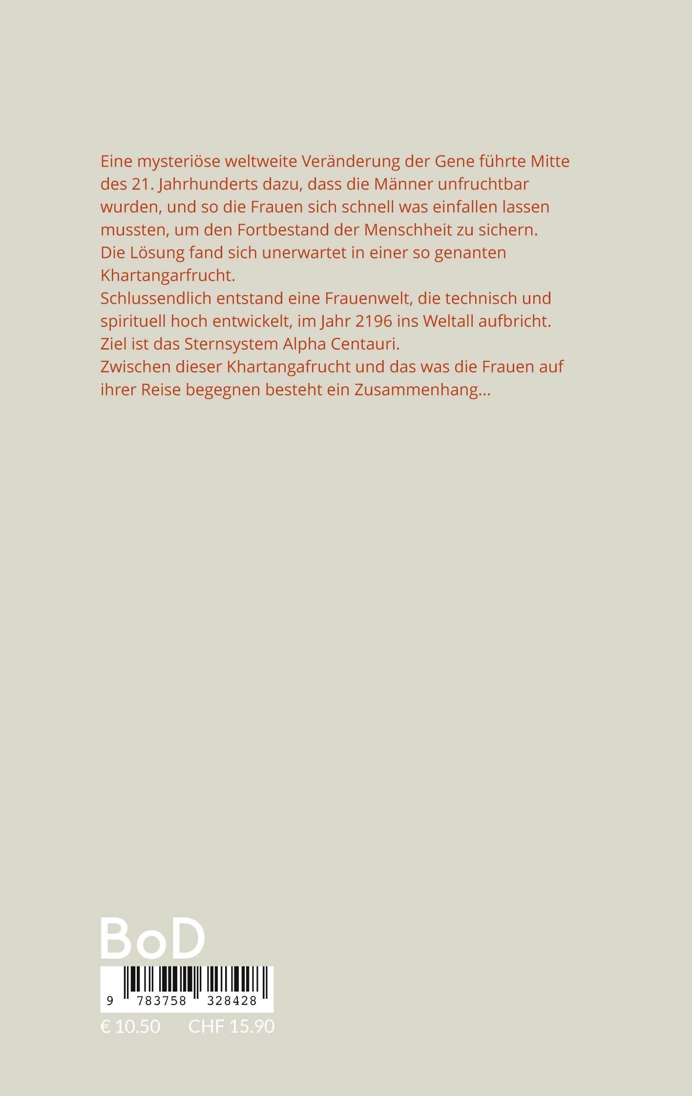 Schlussendlich entstand eine Frauenwelt, die technisch und spirituell hoch entwickelt, im Jahr 2196 ins Weltall aufbricht. Ziel ist das Sternsystem Alpha Centauri.