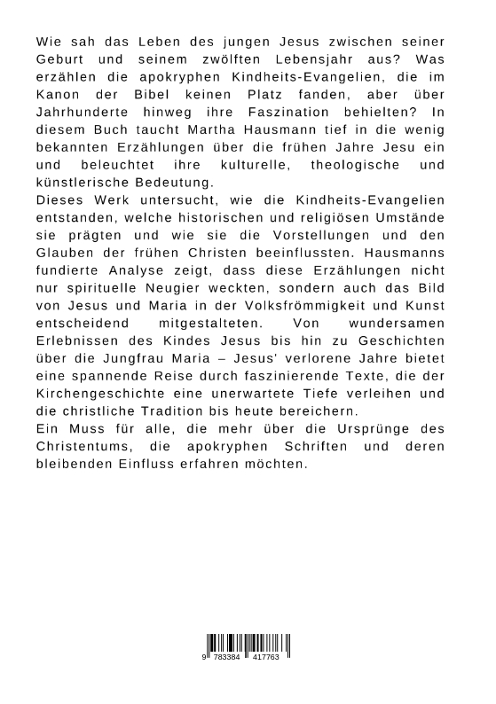 Wie sah das Leben des jungen Jesus zwischen seiner Geburt und seinem zwölften Lebensjahr aus? Was erzählen die apokryphen Kindheits-Evangelien, die im Kanon der Bibel keinen Platz fanden, aber über Jahrhunderte hinweg ihre Faszination behielten? In diesem Buch taucht Martha Hausmann tief in die wenig bekannten Erzählungen über die frühen Jahre Jesu ein und beleuchtet ihre kulturelle, theologische und künstlerische Bedeutung.Dieses Werk untersucht, wie die Kindheits-Evangelien entstanden, welche historischen und religiösen Umstände sie prägten und wie sie die Vorstellungen und den Glauben der frühen Christen beeinflussten. Hausmanns fundierte Analyse zeigt, dass diese Erzählungen nicht nur spirituelle Neugier weckten, sondern auch das Bild von Jesus und Maria in der Volksfrömmigkeit und Kunst entscheidend mitgestalteten. Von wundersamen Erlebnissen des Kindes Jesus bis hin zu Geschichten über die Jungfrau Maria - Jesus' verlorene Jahre bietet eine spannende Reise durch faszinierende Texte, die der Kirchengeschichte eine unerwartete Tiefe verleihen und die christliche Tradition bis heute bereichern.Ein Muss für alle, die mehr über die Ursprünge des Christentums, die apokryphen Schriften und deren bleibenden Einfluss erfahren möchten.