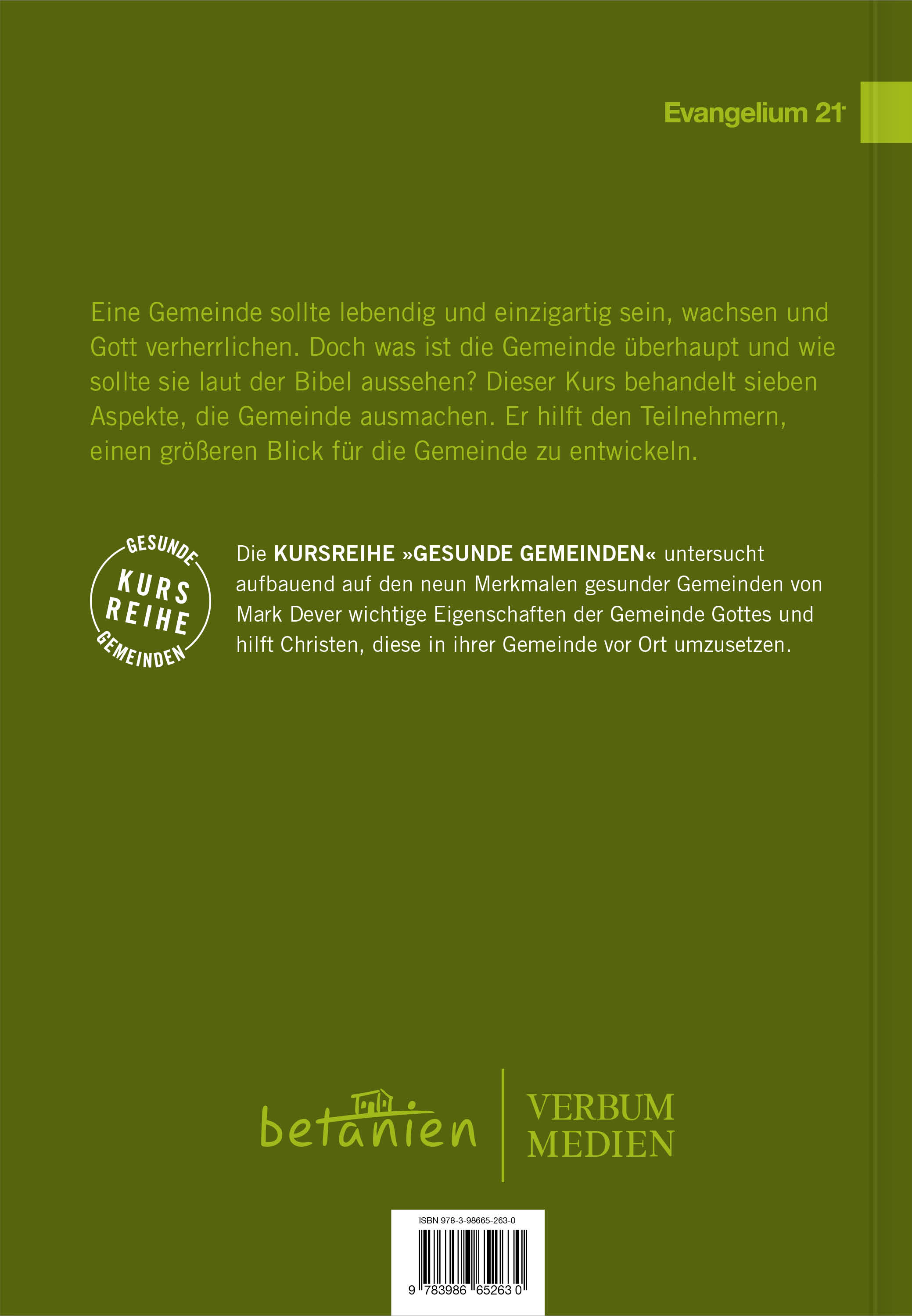 Eine Gemeinde sollte lebendig und einzigartig sein, wachsen und Gott verherrlichen. Doch was ist die Gemeinde überhaupt und wie sollte sie laut der Bibel aussehen? Dieser Kurs behandelt sieben Aspekte, die Gemeinde ausmachen. Er hilft den Teilnehmern, einen größeren Blick für die Gemeinde zu entwickeln.