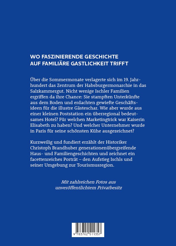 Kurzweilig und fundiert erzählt der Historiker Christoph Brandhuber generationenübergreifende Haus- und Familiengeschichten und zeichnet ein facettenreiches Porträt - den Aufstieg Ischls und seiner Umgebung zur Tourismusregion.