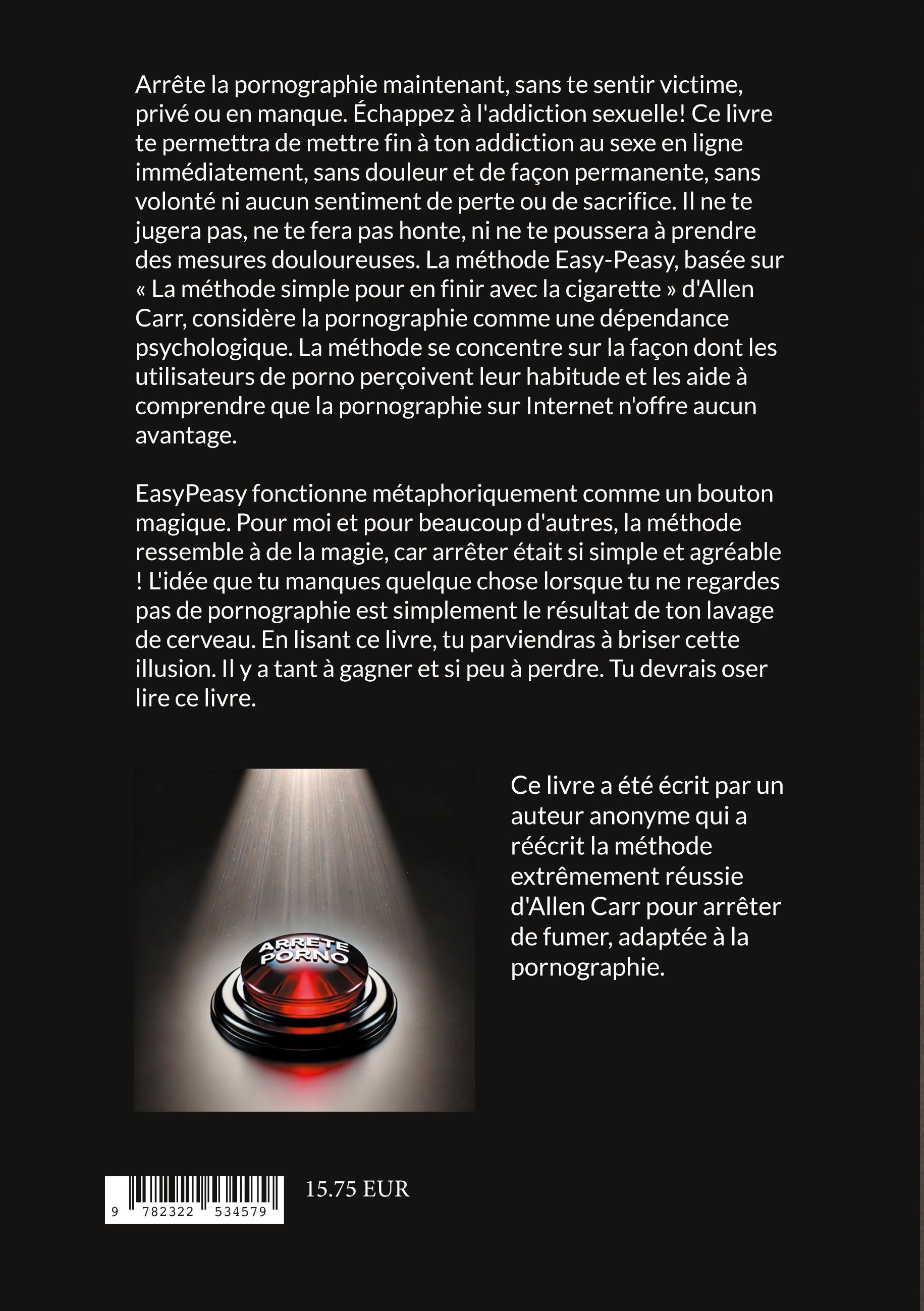 Ce livre a été écrit par un auteur anonyme qui a réécrit la méthode extrêmement réussie d'Allen Carr pour arrêter de fumer, adaptée à la pornographie.