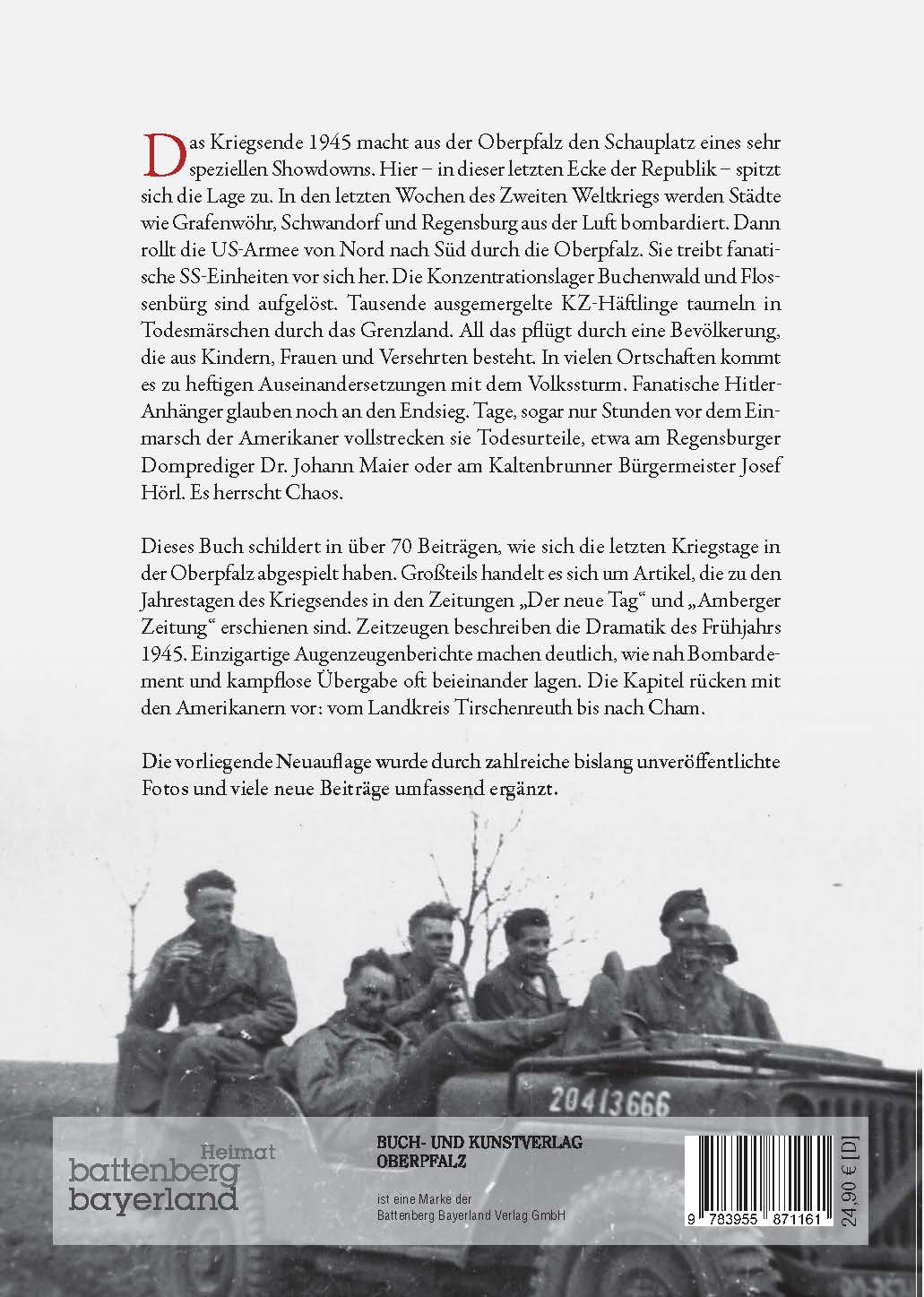 Das Kriegsende macht aus der Oberpfalz den Schauplatz eines sehr speziellen Showdowns. Hier - in dieser letzten Ecke derRepublik - spitzt sich die Lage zu. In den letzten Wochen des Zweiten Weltkriegs rollt die US-Army von Nord nach Süd durch die Oberpfalz. Sie treibt fanatische SS-Einheiten vor sich her. Die Konzentrationslager sind aufgelöst. Tausende ausgemergelte Häftlinge taumeln in Todesmärschen durch das Grenzland. All das pflügt durch eine Bevölkerung, die aus Kindern, Frauen und Versehrten besteht. In vielen Ortschaften kommt es zu heftigen Auseinandersetzungen mit demVolkssturm. Dieses Buch enthält 70 Berichte über diese Tage voller Dramatik, erschienen in den Zeitungen "Der neue Tag /Amberger Zeitung". Die Auflage von 2015 wurde durch bisher unbekannte Fotos und neue Beiträge umfassend ergänzt.