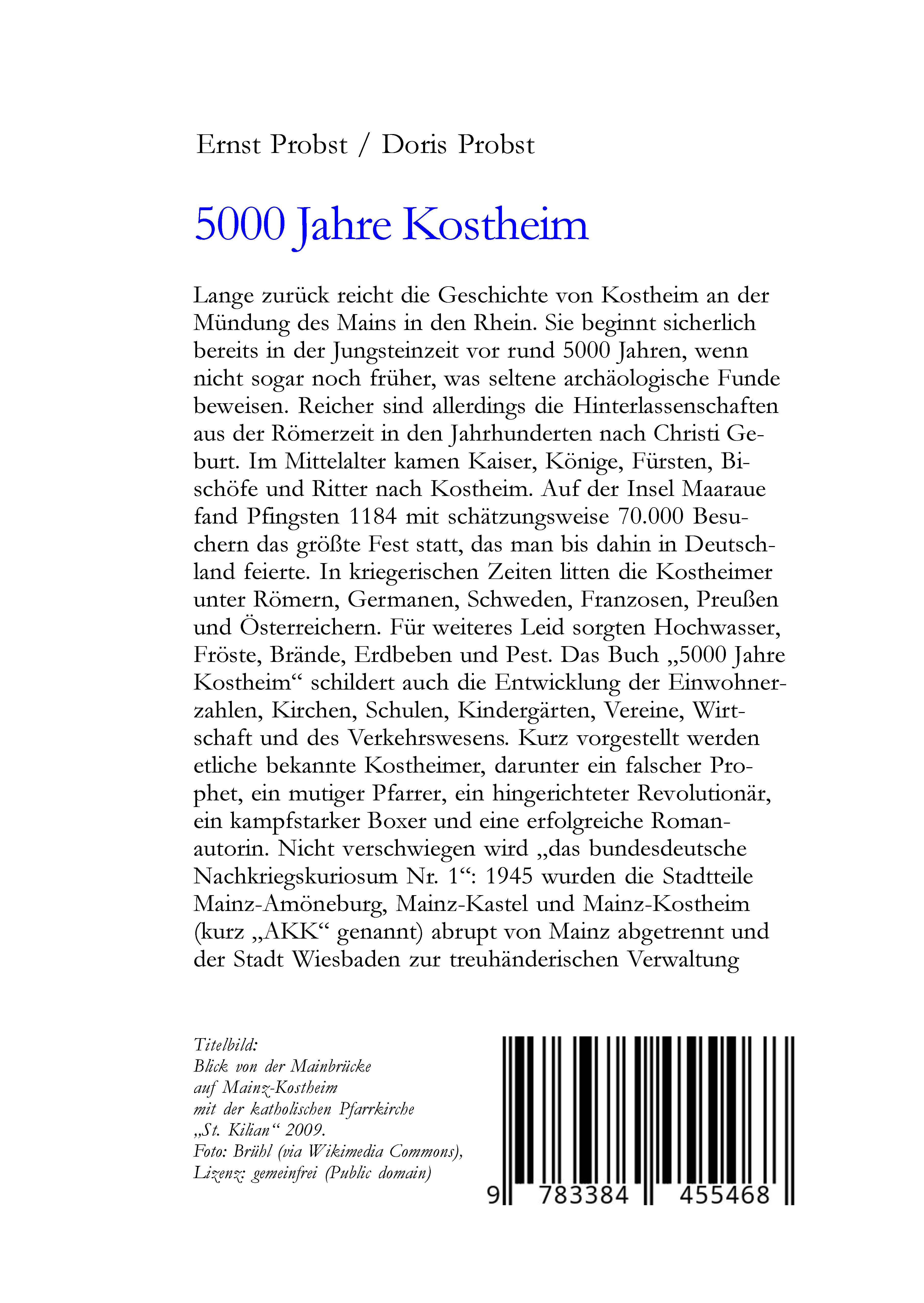 Ernst Probst und Doris Probst, geborene Baumbauer, leben seit 1983 mehr als 40 Jahre nahe an der Grenze zu Kastel in Kostheim. Ernst Probst kam 1946 in Neunburg vorm Wald in Bayern zur Welt und arbeitete als Zeitungsredakteur in Nürnberg, Bayreuth und Mainz. Von 1986 bis heute veröffentlichte er zahlreiche Bücher, Taschenbücher und Broschüren über die Themenbereiche Paläontologie, Kryptozoologie, Archäologie, Geschichte und Aphorismen. Zwischen 2001 und 2006 betätigte er sich als Buchverleger sowie weltweit als Antiquitäten- und Fossilienhändler. Seine 1947 in Idar-Oberstein an der Nahe geborene Ehefrau Doris unterstützte ihn im Verlag und Handel und gab ab 2001 Taschenbücher mit Weisheiten und Torheiten über das Alter, die Arbeit, die Ehe, die Frauen, den Fußball, die Kinder, die Liebe und die Männer sowie mit Gedichten über Tiere heraus.