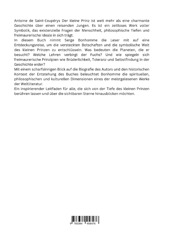 Antoine de Saint-Exupérys Der kleine Prinz ist weit mehr als eine charmante Geschichte über einen reisenden Jungen. Es ist ein zeitloses Werk voller Symbolik, das existenzielle Fragen der Menschheit, philosophische Tiefen und freimaurerische Ideale in sich trägt.In diesem Buch nimmt Serge Bonhomme die Leser mit auf eine Entdeckungsreise, um die versteckten Botschaften und die symbolische Welt des kleinen Prinzen zu entschlüsseln. Was bedeuten die Planeten, die er besucht? Welche Lehren verbirgt der Fuchs? Und wie spiegeln sich freimaurerische Prinzipien wie Brüderlichkeit, Toleranz und Selbstfindung in der Geschichte wider?Mit einem scharfsinnigen Blick auf die Biografie des Autors und den historischen Kontext der Entstehung des Buches beleuchtet Bonhomme die spirituellen, philosophischen und kulturellen Dimensionen eines der meistgelesenen Werke der Weltliteratur.Ein inspirierender Leitfaden für alle, die sich von der Tiefe des kleinen Prinzen berühren lassen und über die sichtbaren Sterne hinausblicken möchten.