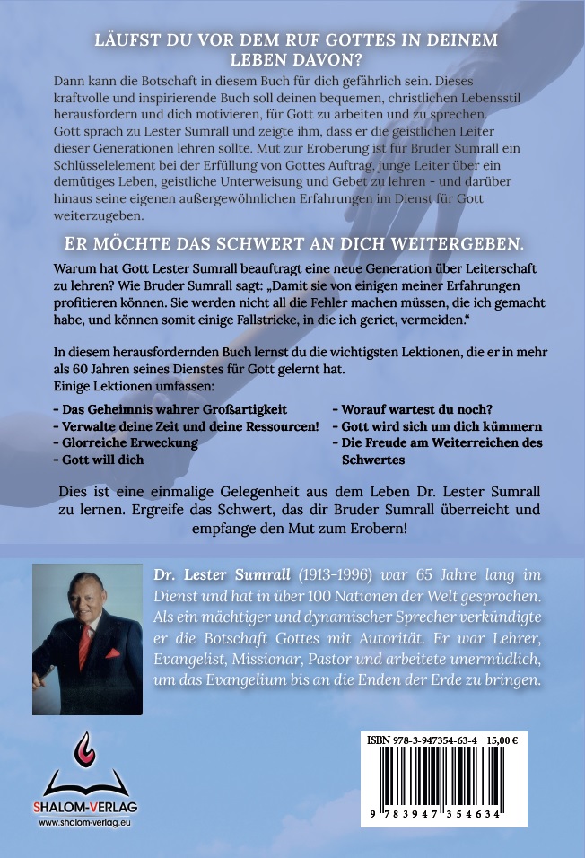 Gott sprach zu Lester Sumrall er müsse die geistlichen Leiter dieser Generationen lehren. Mut zur Eroberung ist für Bruder Sumrall ein Schlüsselelement bei der Erfüllung von Gottes Auftrag, junge Leiter über ein demütiges Leben, geistliche Unterweisung und Gebet zu lehren - und darüber hinaus seine eigenen ungewöhnlichen Erfahrungen im Dienst für Gott weiterzugeben.