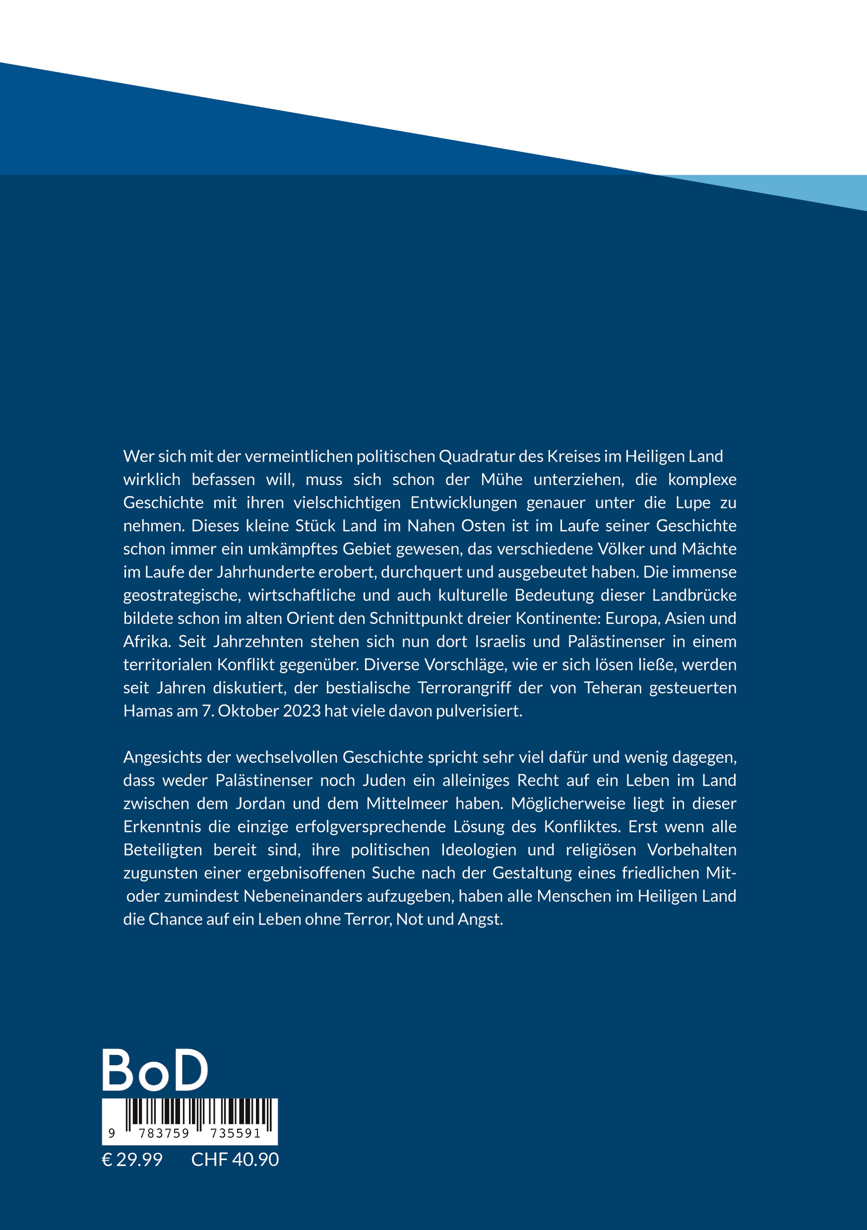 Wer sich mit der vermeintlichen politischen Quadratur des Kreises im Heiligen Land wirklich befassen will, muss sich schon der Mühe unterziehen, die komplexe Geschichte mit ihren vielschichtigen Entwicklungen genauer unter die Lupe zu nehmen. Dieses kleine Stück Land im Nahen Osten ist im Laufe seiner Geschichte schon immer ein umkämpftes Gebiet gewesen, das verschiedene Völker und Mächte im Laufe der Jahrhunderte erobert, durchquert und ausgebeutet haben. Die immense geostrategische, wirtschaftliche und auch kulturelle Bedeutung dieser Landbrücke bildete schon im alten Orient den Schnittpunkt dreier Kontinente: Europa, Asien und Afrika. Seit Jahrzehnten stehen sich nun dort Israelis und Palästinenser in einem territorialen Konflikt gegenüber. Diverse Vorschläge, wie er sich lösen ließe, werden seit Jahren diskutiert, der bestialische Terrorangriff der von Teheran gesteuerten Hamas am 7. Oktober 2023 hat viele davon pulverisiert.