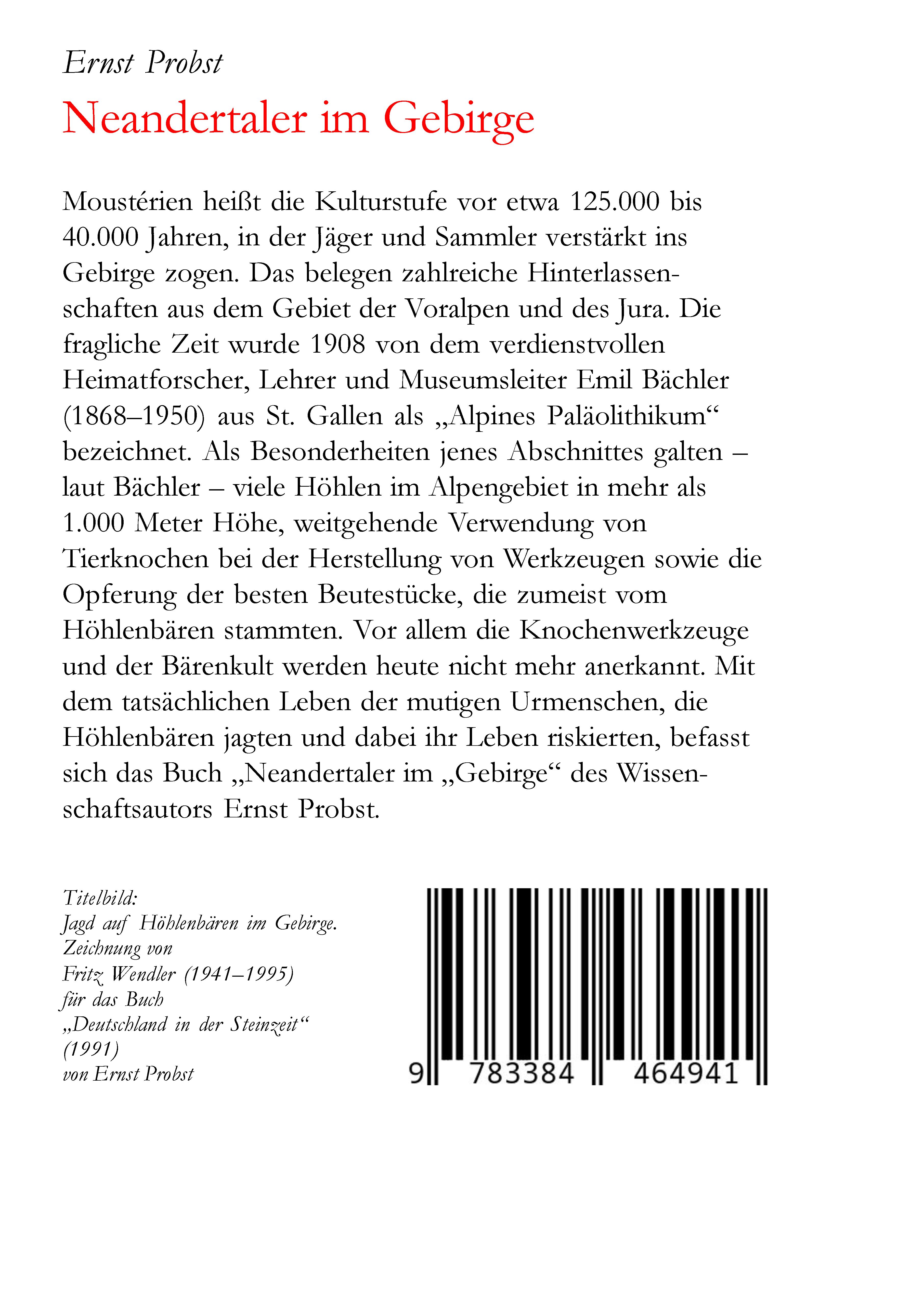 | Schlagworte | Alpines Paläolithikum • Altsteinzeit • Gebirge • Höhlenbären • Höhlenbärenjagd • moustérien • Neandertaler • Steinzeit |