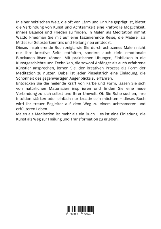In einer hektischen Welt, die oft von Lärm und Unruhe geprägt ist, bietet die Verbindung von Kunst und Achtsamkeit eine kraftvolle Möglichkeit, innere Balance und Frieden zu finden. In Malen als Meditation nimmt Waldo Friedman Sie mit auf eine faszinierende Reise, die Malerei als Mittel zur Selbsterkenntnis und Heilung neu entdeckt.Dieses inspirierende Buch zeigt, wie Sie durch achtsames Malen nicht nur Ihre kreative Seite entfalten, sondern auch tiefe emotionale Blockaden lösen können. Mit praktischen Übungen, Einblicken in die Kunstgeschichte und Techniken, die sowohl Anfänger als auch erfahrene Künstler ansprechen, lernen Sie, den kreativen Prozess als Form der Meditation zu nutzen. Dabei ist jeder Pinselstrich eine Einladung, die Schönheit des gegenwärtigen Augenblicks zu erfahren.Entdecken Sie die heilende Kraft von Farbe und Form, lassen Sie sich von natürlichen Materialien inspirieren und finden Sie eine neue Verbindung zu sich selbst und Ihrer Umwelt. Ob Sie Ruhe suchen, Ihre Intuition stärken oder einfach nur kreativ sein möchten - dieses Buch wird Ihr treuer Begleiter auf dem Weg zu einem achtsameren und erfüllteren Leben.