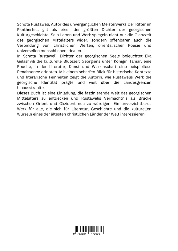 | Schlagworte | Christentum im Kaukasus • Georgien Geschichte • georgische Identität • georgische Literatur • Kaukasus Kultur • Königin Tamar • Kulturhistorische Studien • Mittelalterliche Dichtung • Nationaldichter Georgiens • Ritter im Pantherfell • Rustaweli Analyse • Schota Rustaweli |