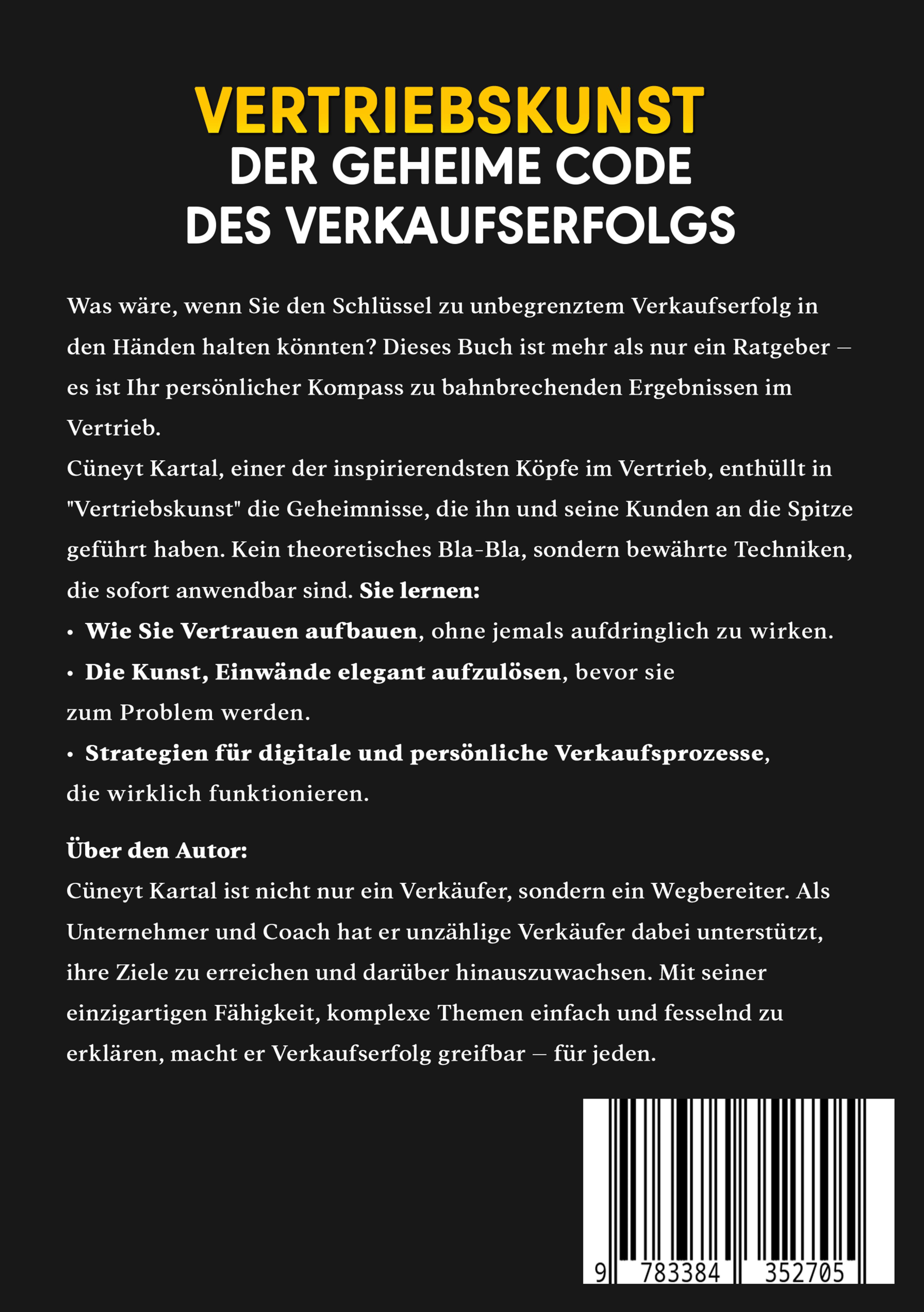 Cüneyt Kartal – Der Meister der Verkaufskunst Cüneyt Kartal ist nicht nur ein Vertriebstrainer – er ist eine Inspiration. Seit über 20 Jahren prägt er die Kunst des Verkaufens und hat unzähligen Verkäufern geholfen, ihre Strategien zu optimieren, Kundenbindungen zu stärken und nachhaltigen Erfolg zu erzielen. Was Cüneyt einzigartig macht, ist seine unvergleichliche Kombination aus fundiertem Fachwissen und charismatischer Persönlichkeit. Für ihn ist Verkaufen mehr als Technik – es ist die Kunst, Menschen zu verstehen, Vertrauen aufzubauen und echte Verbindungen zu schaffen. Sein Ansatz verbindet bewährte Prinzipien wie aktives Zuhören und Kundenorientierung mit innovativen Methoden wie Neuro-Linguistischem Programmieren (NLP), Storytelling und Social Selling. Mit klaren, praxisnahen Beispielen und direkt umsetzbaren Strategien macht er komplexe Themen verständlich und motiviert seine Zuhörer, ihre besten Leistungen zu zeigen. Cüneyt zeigt, wie aktives Zuhören und die richtige Ansprache den Schlüssel zu nachhaltigem Verkaufserfolg bilden. Seine Mission: Verkäufer nicht nur zu befähigen, ihre Kunden zu überzeugen, sondern sie zu begeistern – und dabei Beziehungen aufzubauen, die langfristig echten Mehrwert schaffen. Ob als Keynote-Speaker, Autor oder Coach – Cüneyt Kartal begeistert mit einem Mix aus Humor, tiefgreifendem Wissen und fesselnder Energie. Er inspiriert, motiviert und liefert Ergebnisse. Sein Leitmotiv: „Verkaufen ist Vertrauen in Aktion – wer Menschen versteht, wird immer erfolgreich sein.“