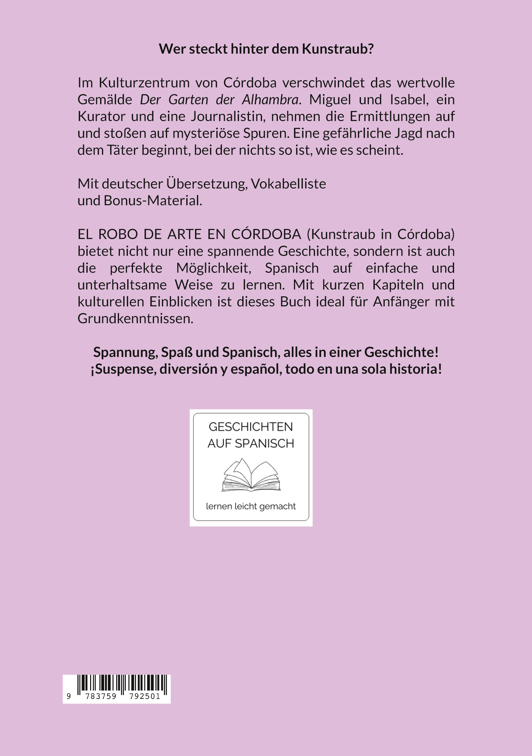EL ROBO DE ARTE EN CÓRDOBA (Kunstraub in Córdoba) bietet nicht nur eine spannende Geschichte, sondern ist auch die perfekte Möglichkeit, Spanisch auf einfache und unterhaltsame Weise zu lernen. Mit kurzen Kapiteln und kulturellen Einblicken ist dieses Buch ideal für Anfänger mit Grundkenntnissen.