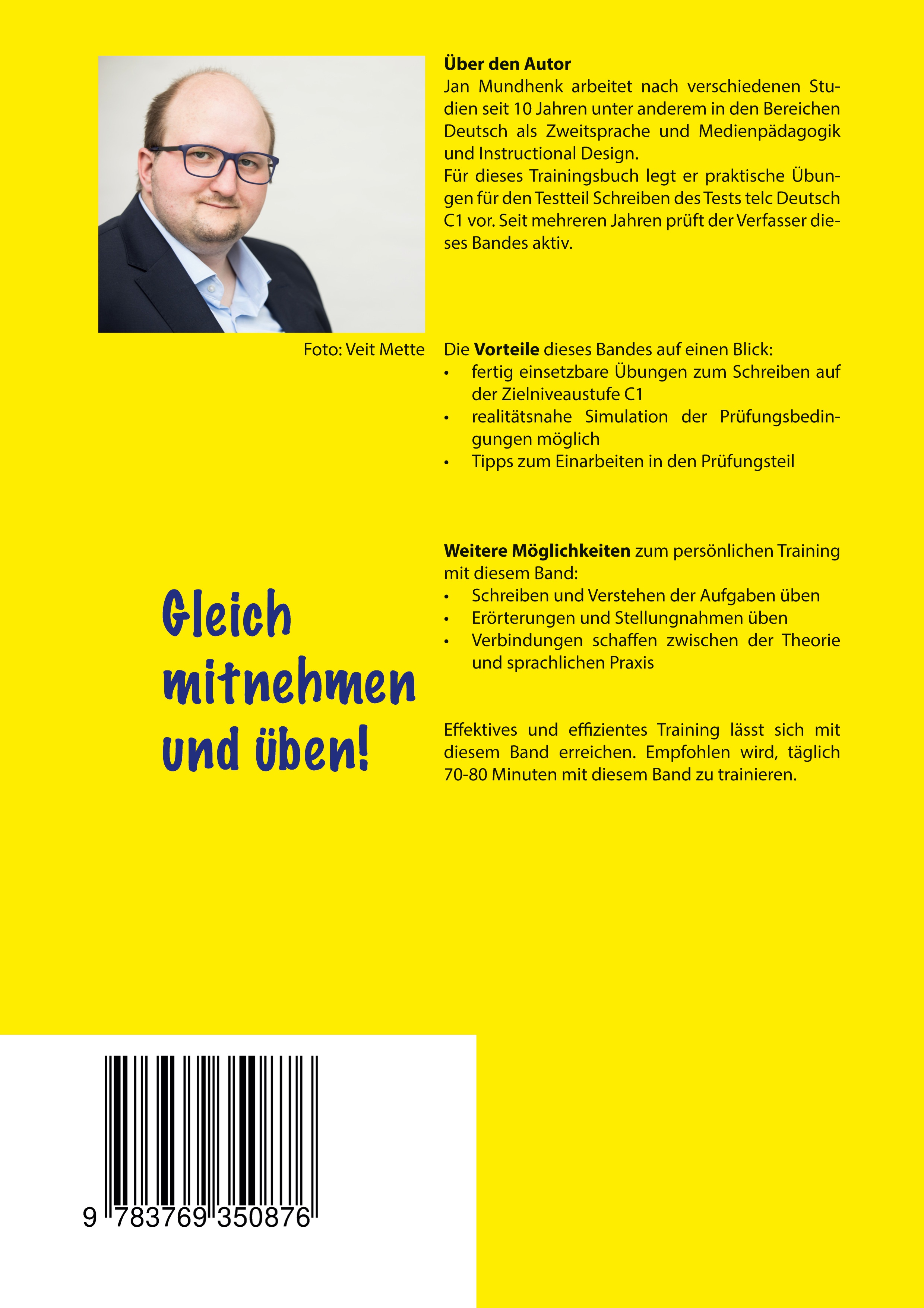 Jan Mundhenk arbeitet nach verschiedenen Studien seit 10 Jahren unter anderem in den Bereichen Deutsch als Zweitsprache und Medienpädagogik und Instructional Design. Für dieses Trainingsbuch zum Test telc Deutsch C1 legt er praktische Übungen vor. Seit mehreren Jahren prüft der Verfasser dieses Bandes aktiv.