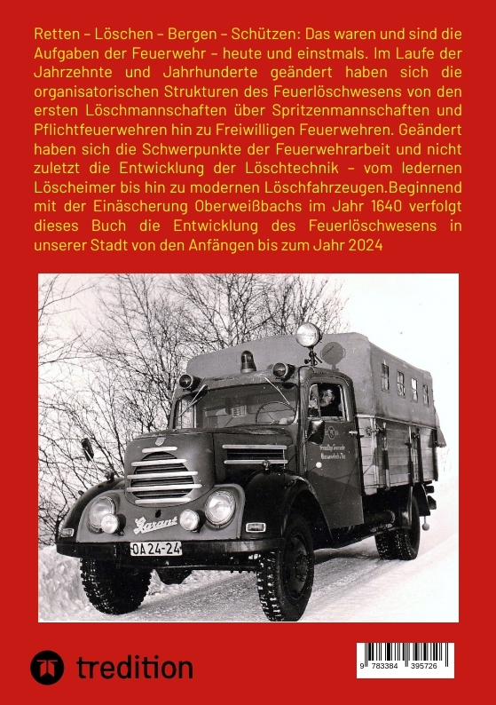 Retten - Löschen - Bergen - Schützen: Das waren und sind die Aufgaben der Feuerwehr - heute und einstmals. Dabei haben sich die organisatorischen Strukturen des Feuerlöschwesens, die Technik und die Schwerpunkte der Feuerwehrarbeit im Laufe der Jahrzehnte und Jahrhunderte drastisch verändert. Die Geschichte des Oberweißbacher Feuerlöschwesens ist dafür ein Beispiel.
