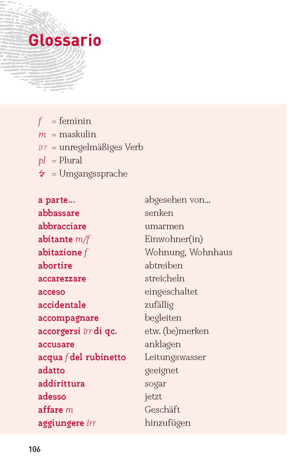 - Infokästen zu Sprache und Grammatik: Zusätzliche Informationen, Tipps und Wissenswertes zu Sprache, Grammatik und Landeskunde ergänzen Ihren Lernkrimi Kurzkrimi "L'ultimo messaggio".