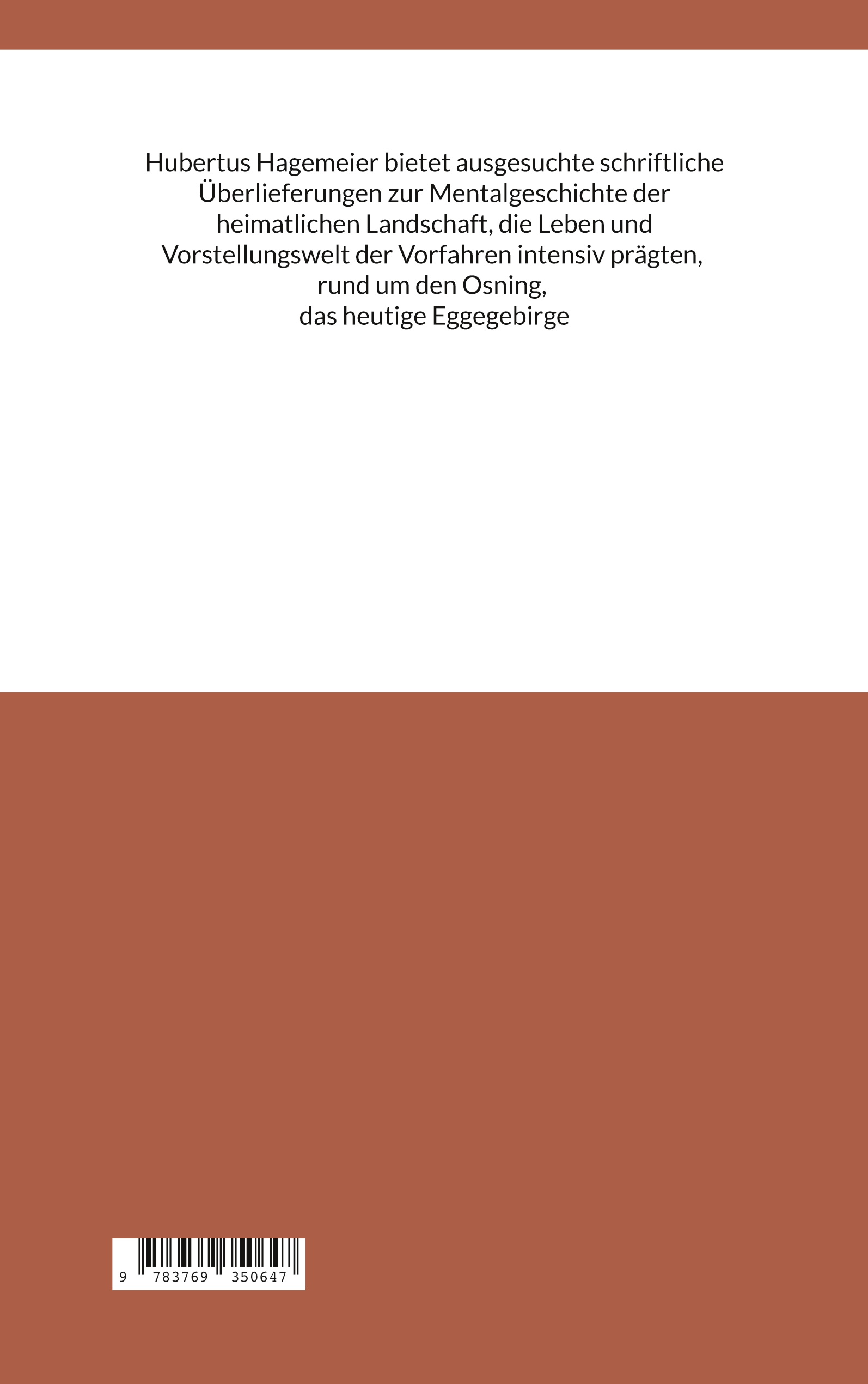 Hubertus Hagemeier bietet ausgesuchte schriftliche Überlieferungen zur Mentalgeschichte der heimatlichen Landschaft, die Leben und Vorstellungswelt der Vorfahren intensiv prägten, rund um den Osning, das heutige Eggegebirge