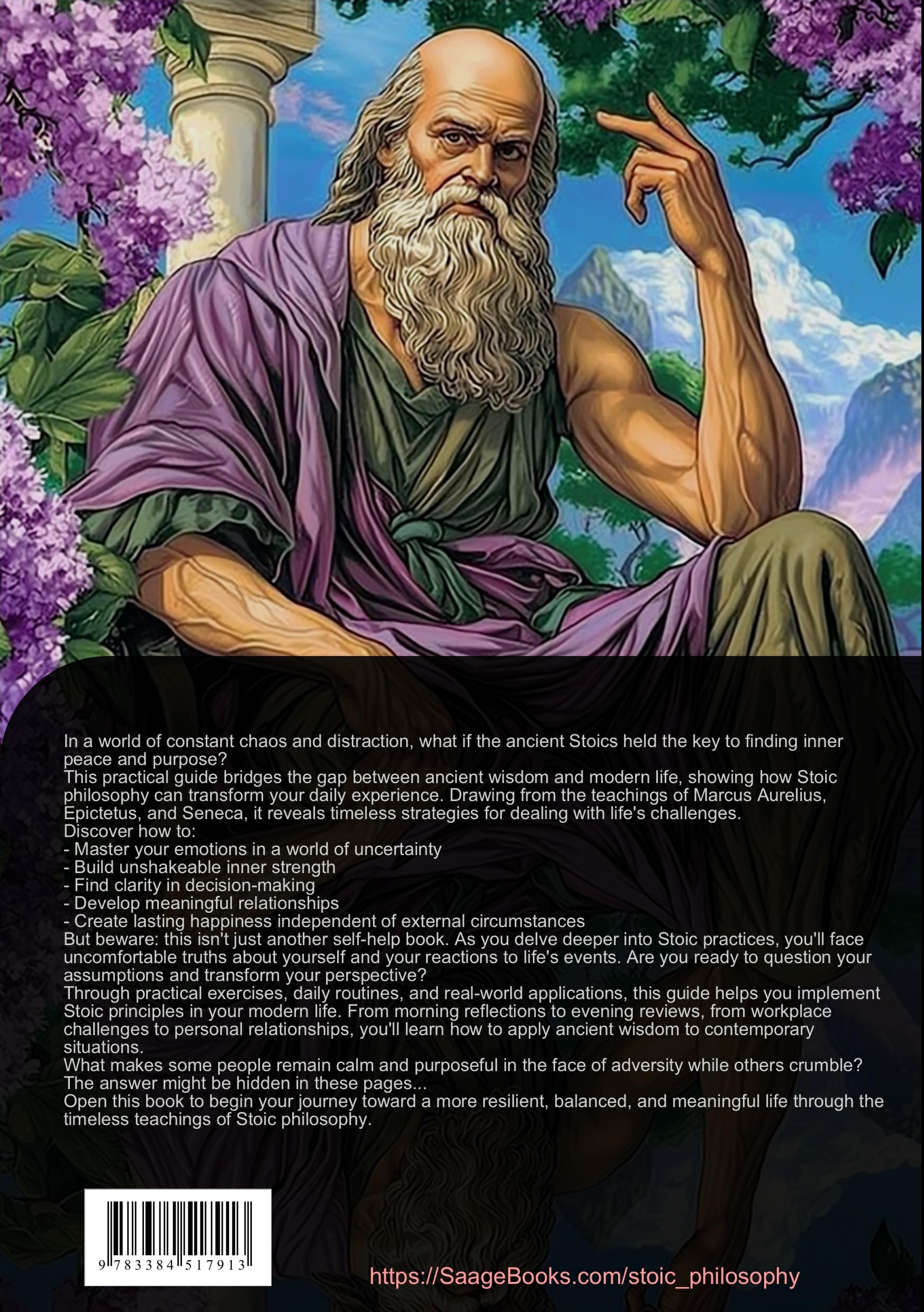 Discover the timeless wisdom of stoic philosophy and learn how to apply ancient teachings to modern challenges. This practical introduction to philosophy as a way of life bridges the gap between ancient greek philosophy and contemporary daily practices.The book begins with a comprehensive overview of stoicism's historical development, from its origins in ancient philosophy to its influence on great philosophers throughout history. You'll learn about the core concepts of stoic philosophy and how they can be applied to create a more meaningful life.Each chapter combines theoretical understanding with practical exercises, helping you develop:- A stronger sense of inner peace and emotional resilience- Better decision-making skills through stoic wisdom- Practical techniques for handling life's challenges- Methods for cultivating self-discipline and character strength- Skills for maintaining equilibrium in difficult situationsThe book explores essential aspects of practicing stoic philosophy, including:- Morning and evening reflection routines- Techniques for emotional mastery- Approaches to rational decision-making- Methods for developing virtue and wisdom- Strategies for maintaining perspective in challenging timesWhether you're new to philosophy or seeking to deepen your understanding of stoicism, this book provides a structured approach to incorporating philosophical principles into daily life. It offers clear explanations of complex concepts and practical exercises for developing stoic resilience.Learn how ancient wisdom can help you navigate modern challenges while developing a more balanced, purposeful approach to life through the practice of stoic philosophy.This book was created using innovative technologies such as Artificial Intelligence and specially developed tools - for example, in brainstorming, research, writing, editing, quality assurance, and the design of decorative illustrations.In this way, we want to offer you a particularly coherent, modern, and even higher-quality reading experience.