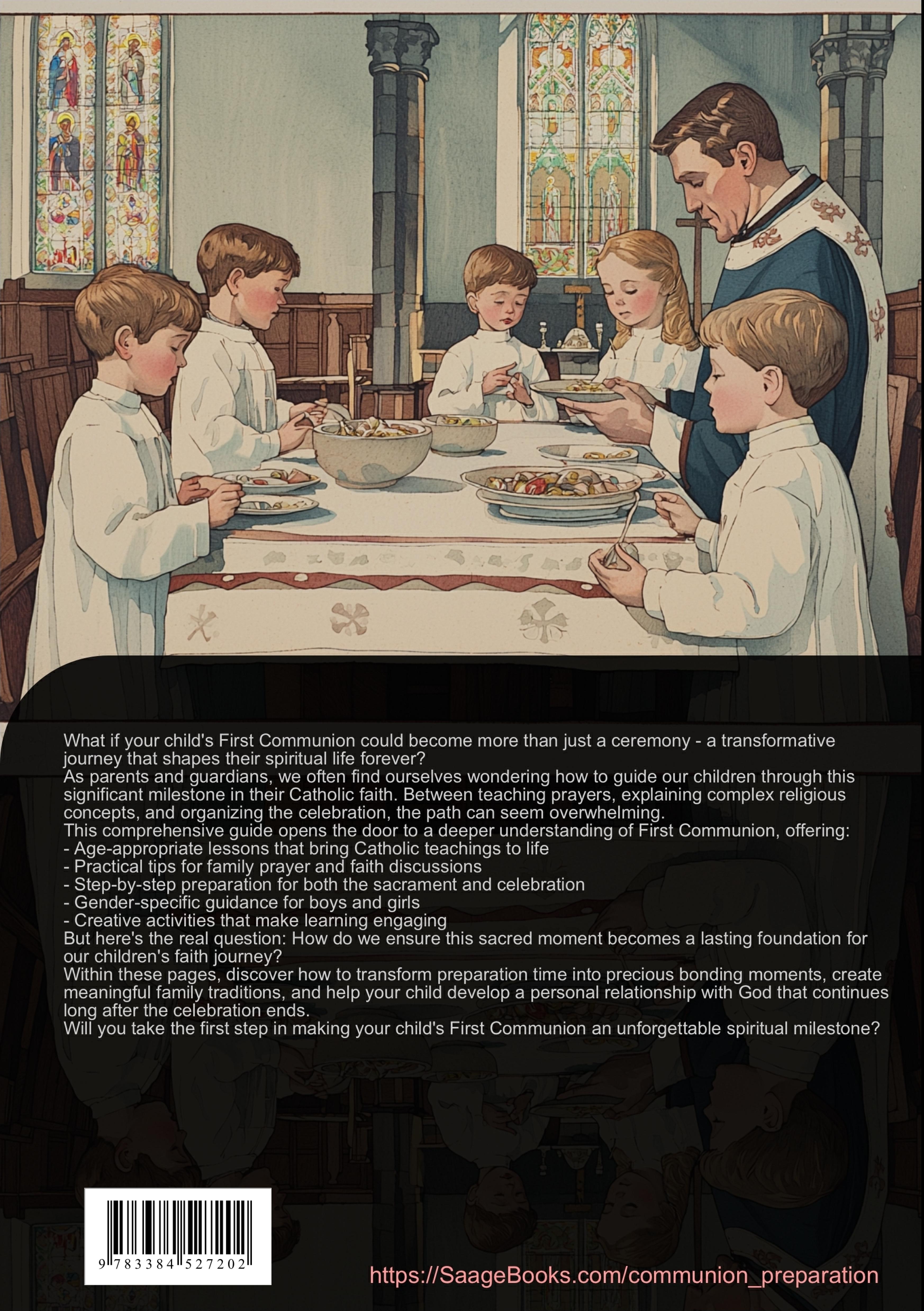 This First Communion Preparation Book provides a thoughtful and structured path to First Communion for both boys and girls in the Catholic faith. The guide offers comprehensive support for families accompanying their children on this important spiritual journey.The book is organized into clear sections covering all aspects of Communion preparation:- Foundations of Catholic Faith: Introduction to basic beliefs, sacraments, prayers, and rituals- Personal Faith Development: Guidance on deepening the relationship with God and living Christian values- Family Support: Practical advice for family prayer and religious conversations- Preparation for the Celebration: Details about confession, rehearsals, and clothing guidelines- The Communion Day: Step-by-step explanation of the ceremony, music selection, and photography- Family Celebration: Tips for guest management, festive catering, and meaningful giftsSpecial features include:- Gender-specific sections with role models for boys and girls- Creative learning materials and group activities- Practical exercises for confession and receiving communion- Musical suggestions and biblical stories- Guidance for sustainable faith developmentThis Communion Book helps families create a meaningful preparation experience while ensuring children understand the spiritual significance of their First Holy Communion. The guide includes resources for continued faith engagement through youth groups, altar service, and family religious activities.Written in accessible language with consideration for both traditional and modern Catholic families, this preparation book serves as a valuable resource for parents and children during this significant time of spiritual growth.This book was created using innovative technologies such as Artificial Intelligence and specially developed tools - for example, in brainstorming, research, writing, editing, quality assurance, and the design of decorative illustrations.In this way, we want to offer you a particularly coherent, modern, and even higher-quality reading experience.