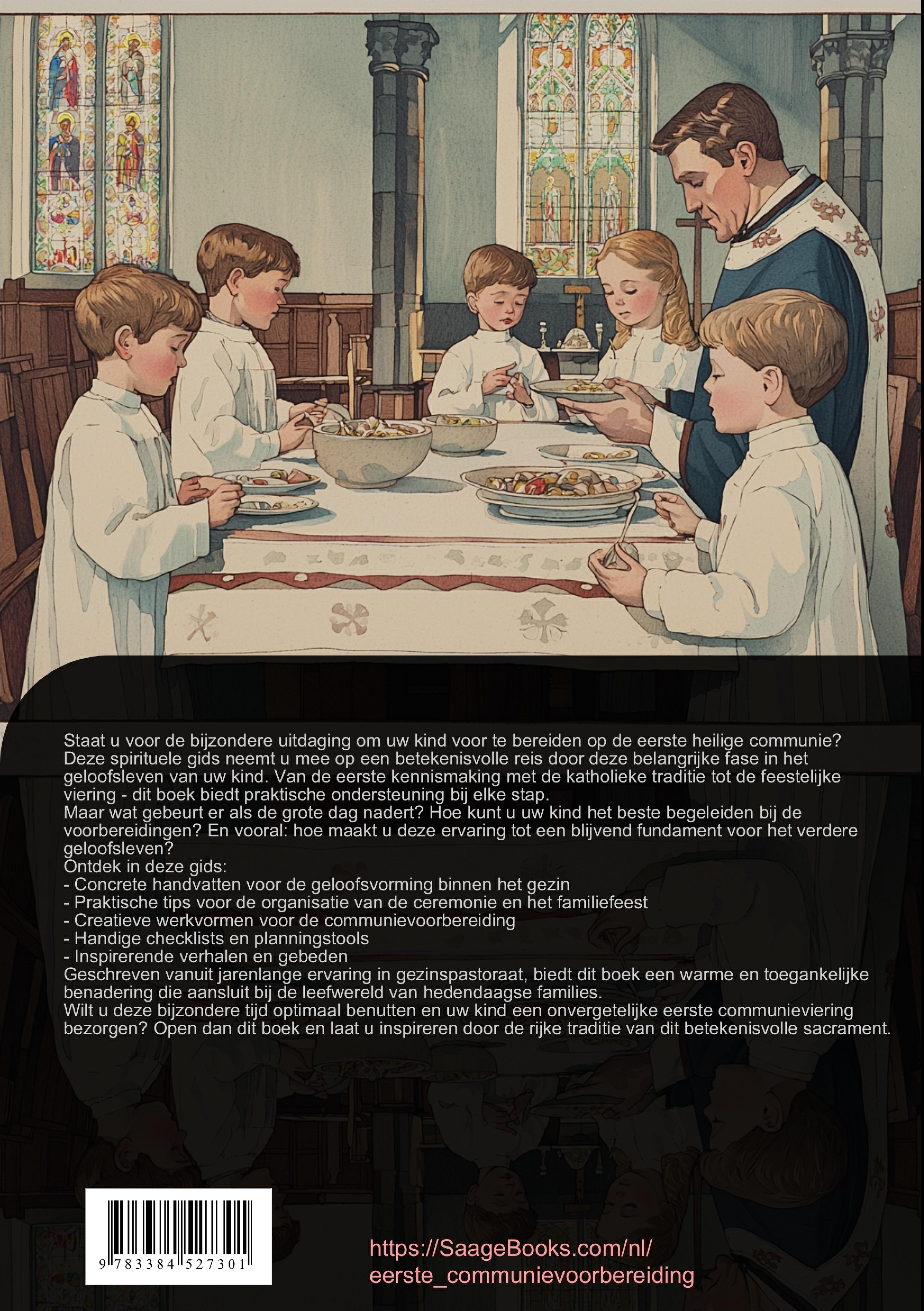 Dit uitgebreide handboek biedt families een praktische leidraad voor de voorbereiding op de eerste heilige communie van hun kind.Het boek behandelt alle aspecten van deze belangrijke mijlpaal in het katholieke geloof, van de spirituele voorbereiding tot de praktische organisatie van de feestelijke dag. Ouders vinden hier waardevolle informatie over:- De betekenis en achtergrond van het sacrament- Praktische tips voor het kiezen van een eerste communiejurk voor meisjes en feestkleding voor jongens- Creatieve ideeën voor communie-gunsten en communie-tags- Traditionele elementen zoals de communie-sluier en communie-rozet- Suggesties voor het bakken van communie cupcakes en andere feestelijke versnaperingenBijzondere aandacht gaat uit naar de spirituele vorming van het kind, met hoofdstukken over:- Gebeden en rituelen voor thuis- Het voorbereiden op de eerste biecht- Het maken van een persoonlijk communie-mozaïek als herinnering- Het gebruik van een communie-stempel voor uitnodigingenDe gids bevat ook praktische checklists voor:- Planning van de ceremonie- Organisatie van het familiefeest- Keuze van gepaste communie dec(oratie)- Tips voor het schrijven van communie dank je kaartjesMet dit handboek kunnen families zich stap voor stap voorbereiden op deze bijzondere dag, waarbij zowel de religieuze betekenis als de feestelijke viering tot hun recht komen.Dit boek is tot stand gekomen met behulp van innovatieve technologieën zoals Kunstmatige Intelligentie en speciaal ontwikkelde tools - bijvoorbeeld bij het bedenken van ideeën, onderzoek, schrijven, redigeren, kwaliteitsborging en het ontwerpen van decoratieve illustraties.Op deze manier willen wij u een bijzonder coherente, moderne en nog hoogwaardigere leeservaring bieden.