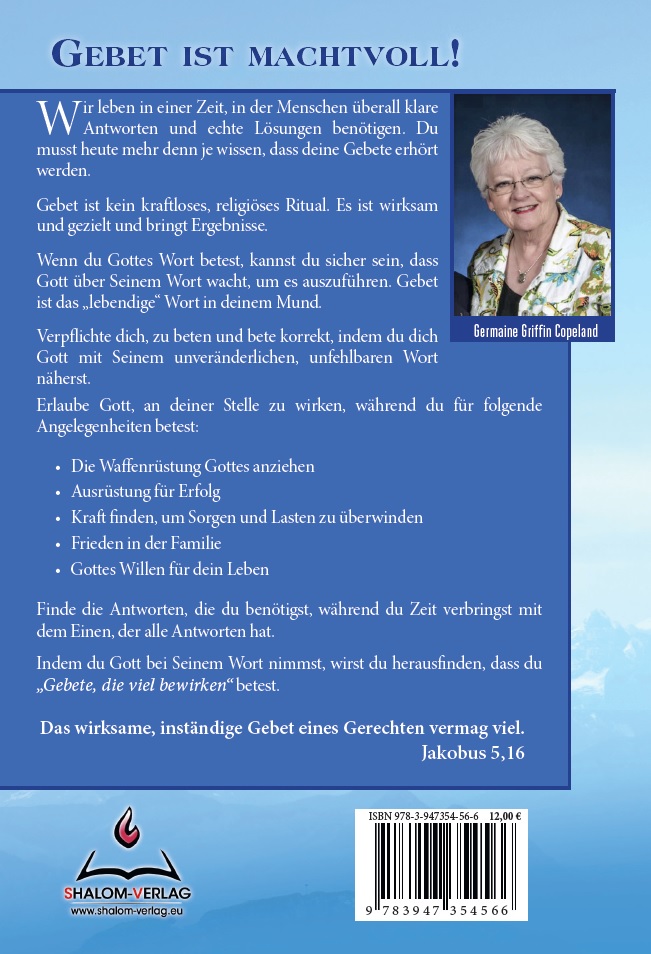 Dieses Buch beinhaltet insgesamt 50 Gebete: Gebete der Hingabe, Gebete für persönliche Anliegen sowie Fürbittegebete für andere. Die Bibelstellen, die zu Gebeten formuliert sind, sind jeweils angegeben. So ist sichergestellt, dass man zu hundert Prozent Gottes Wort und Gottes Willen betet und bekennt - und diese Gebete viel bewirken.
