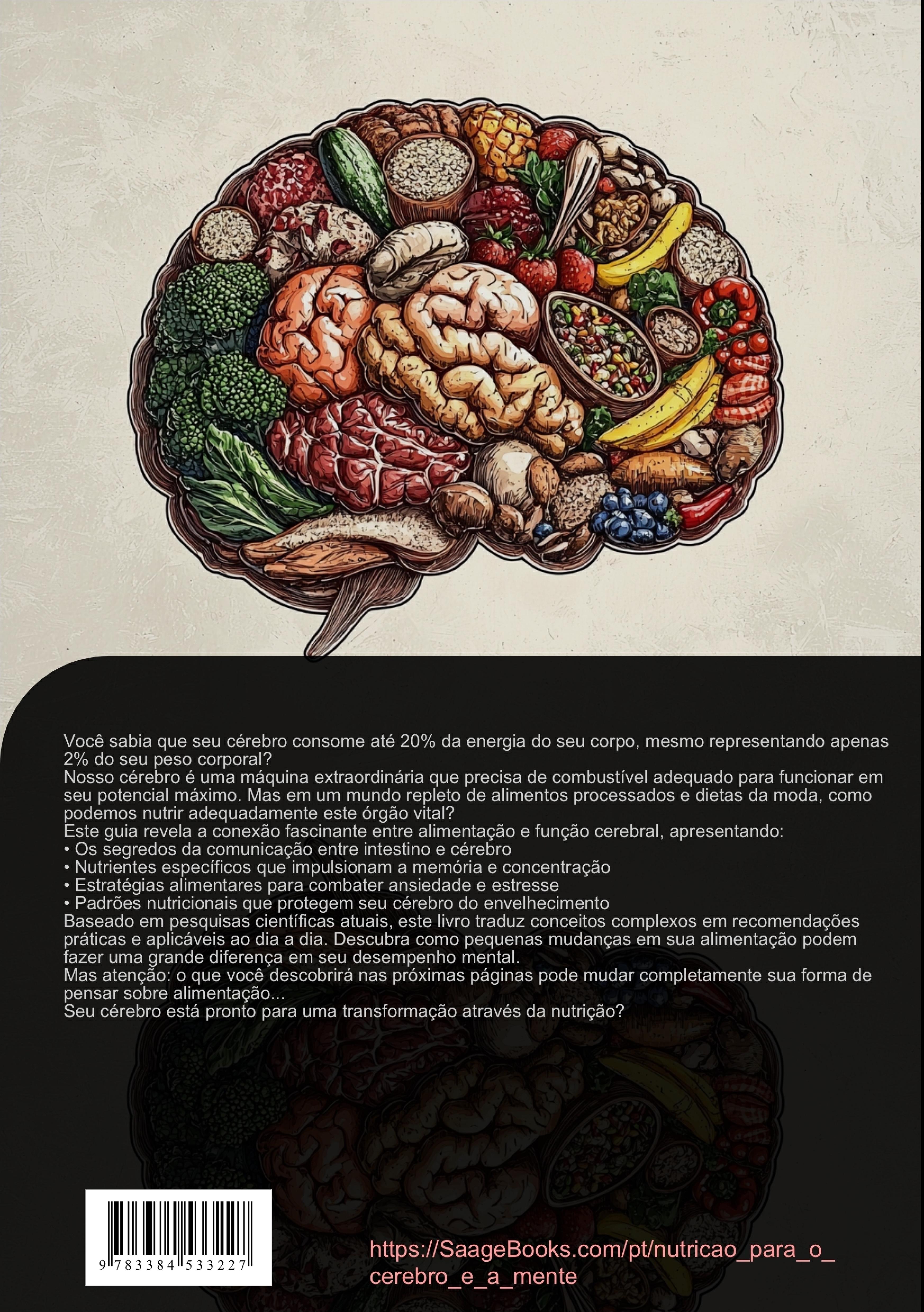Descubra como a alimentação adequada pode transformar seu funcionamento cerebral e bem-estar mental neste guia abrangente sobre nutrição cerebral.O livro apresenta uma análise detalhada da relação entre alimentação e saúde cerebral, começando pelos fundamentos bioquímicos e processos metabólicos que ocorrem em nosso cérebro. Você aprenderá sobre a importante conexão entre intestino e cérebro, e como os nutrientes influenciam diretamente nossos neurotransmissores.A obra explora como diferentes alimentos podem afetar seu humor e equilíbrio emocional, oferecendo orientações práticas sobre:- Alimentos que estimulam a produção de serotonina- Nutrientes que reduzem o estresse- Estratégias nutricionais para prevenir distúrbios emocionaisPara quem busca melhorar o desempenho cognitivo, o livro apresenta:- Nutrientes específicos para aumentar a concentração- Alimentos que otimizam a memória- Estratégias para manter a energia mental ao longo do diaA seção prática inclui:- Planejamento de refeições- Organização de compras- Dicas para criar novos hábitos alimentaresO guia também aborda aspectos preventivos, como:- Proteção contra envelhecimento cerebral- Redução do estresse oxidativo- Manutenção da saúde cerebral a longo prazoCom base em pesquisas científicas atuais, este livro oferece um roteiro prático para quem deseja otimizar suas funções cerebrais através da alimentação adequada.Este livro foi criado com o uso de tecnologias inovadoras, como Inteligência Artificial e ferramentas especialmente desenvolvidas - por exemplo, na geração de ideias, pesquisa, escrita, edição, garantia de qualidade e design de ilustrações decorativas.Desta forma, queremos oferecer-lhe uma experiência de leitura particularmente coerente, moderna e de ainda maior qualidade.
