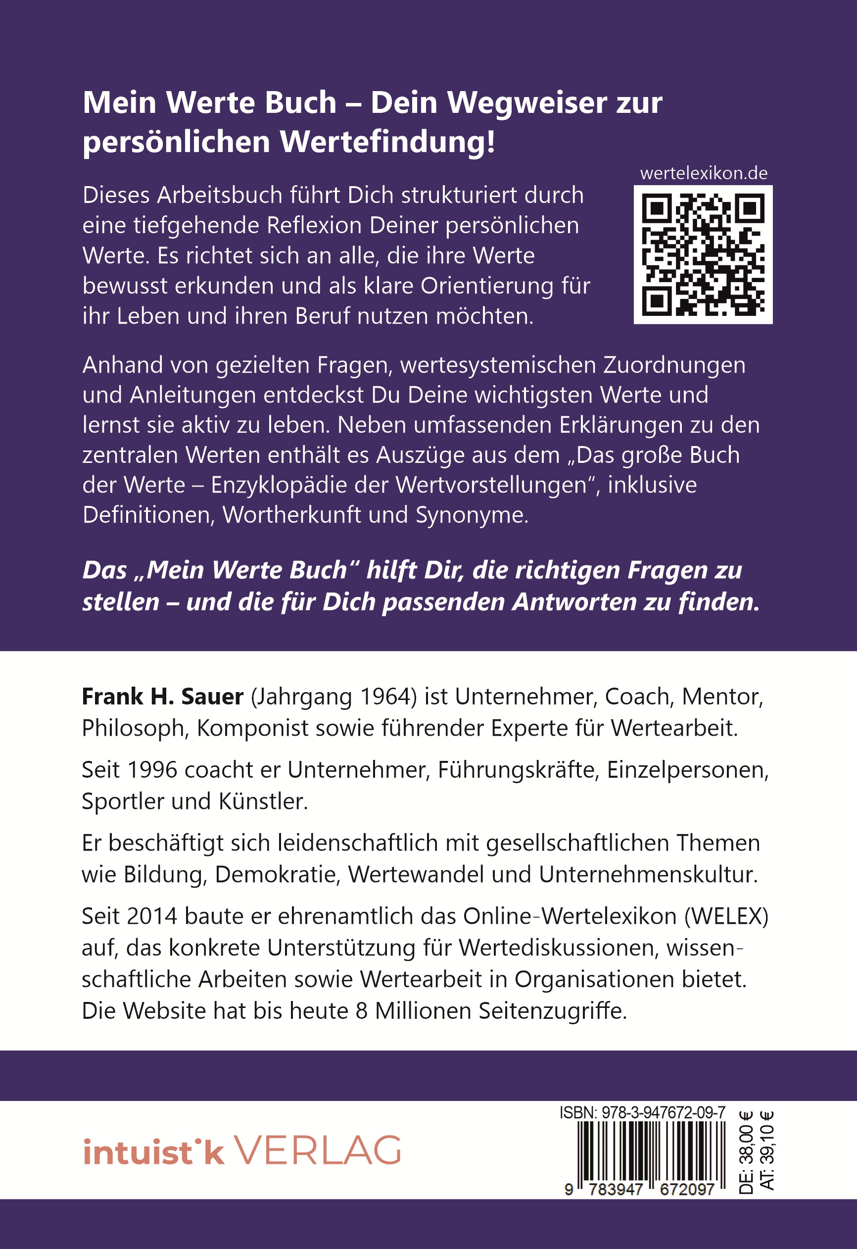 Anhand gezielter Fragen, wertesystemischer Zuordnungen und praxisnaher Anleitungen werden die wichtigsten Werte identifiziert und aktiv in den Alltag integriert. Neben umfassenden Erklärungen zu zentralen Werten enthält das Buch Auszüge aus Das große Buch der Werte – Enzyklopädie der Wertvorstellungen, inklusive Definitionen, Wortherkunft und Synonyme.