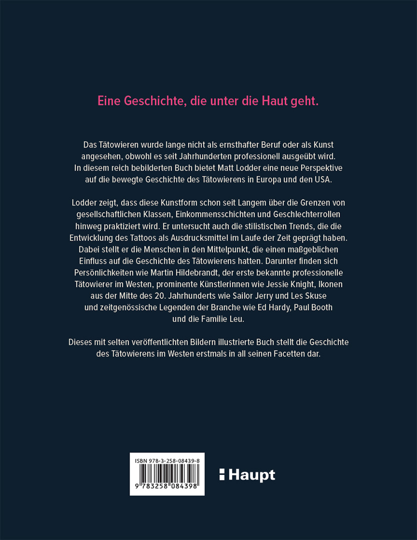 Tattoos schreiben Geschichten auf den Körper. Das Tätowieren wird seit Jahrhunderten professionell ausgeübt, doch wurde es lange nicht als ernsthafter Beruf oder als Kunst angesehen. In diesem reich bebilderten Buch bietet Matt Lodder eine neue Perspektive auf die Geschichte des Tätowierens in Europa und den Vereinigten Staaten. Lodder zeigt, dass die Kunst des Tätowierens seit Langem über die Grenzen von gesellschaftlichen Klassen, Einkommensschichten und Geschlechterrollen hinweg praktiziert wurde. Er untersucht auch die stilistischen Trends, die die Entwicklung des Tattoos als Ausdrucksmittel im Laufe seiner Geschichte geprägt haben.