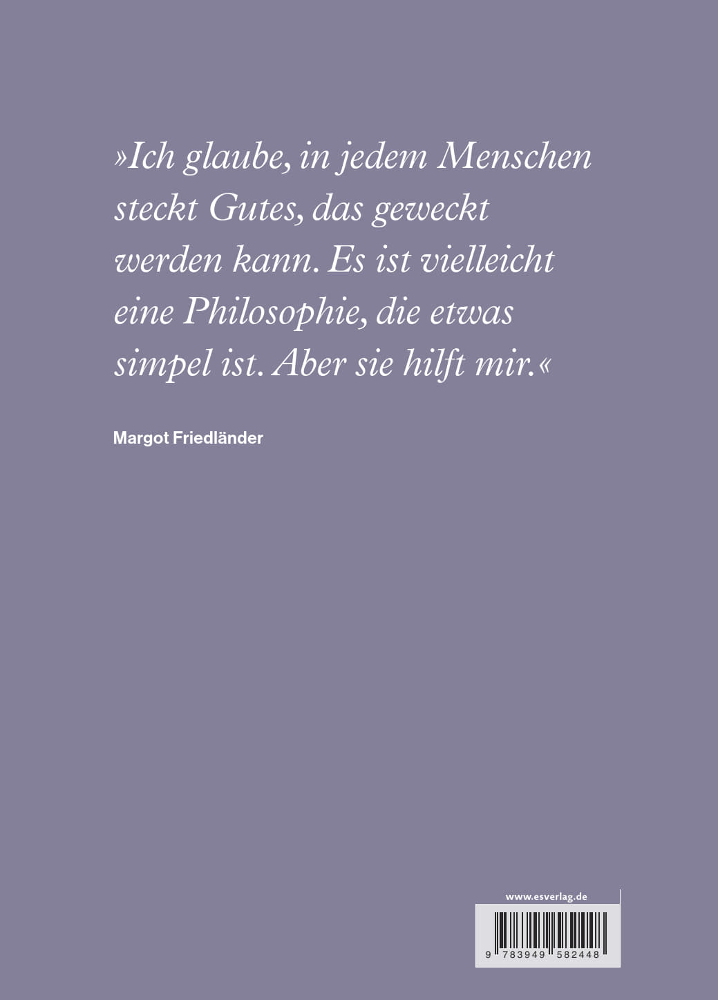 Margot Friedländer: Eine Stimme für das Leben ist eine kraftvolle und berührende Hommage an eine der bedeutendsten Zeitzeuginnen des Holocaust. Mit Fotografien von Markus C. Hurek und Zitaten von Margot Friedländer, die ihre Botschaft für Menschlichkeit und Toleranz mit einem Appell an Wachsamkeit und Aufbegehren verbindet. Es ist ein Appell, die Erinnerung zu bewahren und für eine gerechtere, menschlichere Zukunft einzutreten. Margot Friedländers Leben und Engagement sind nicht nur ein eindrucksvolles Zeugnis für Resilienz und Vergebung, sondern auch dafür, dass ein Neubeginn im Leben jederzeit möglich ist.