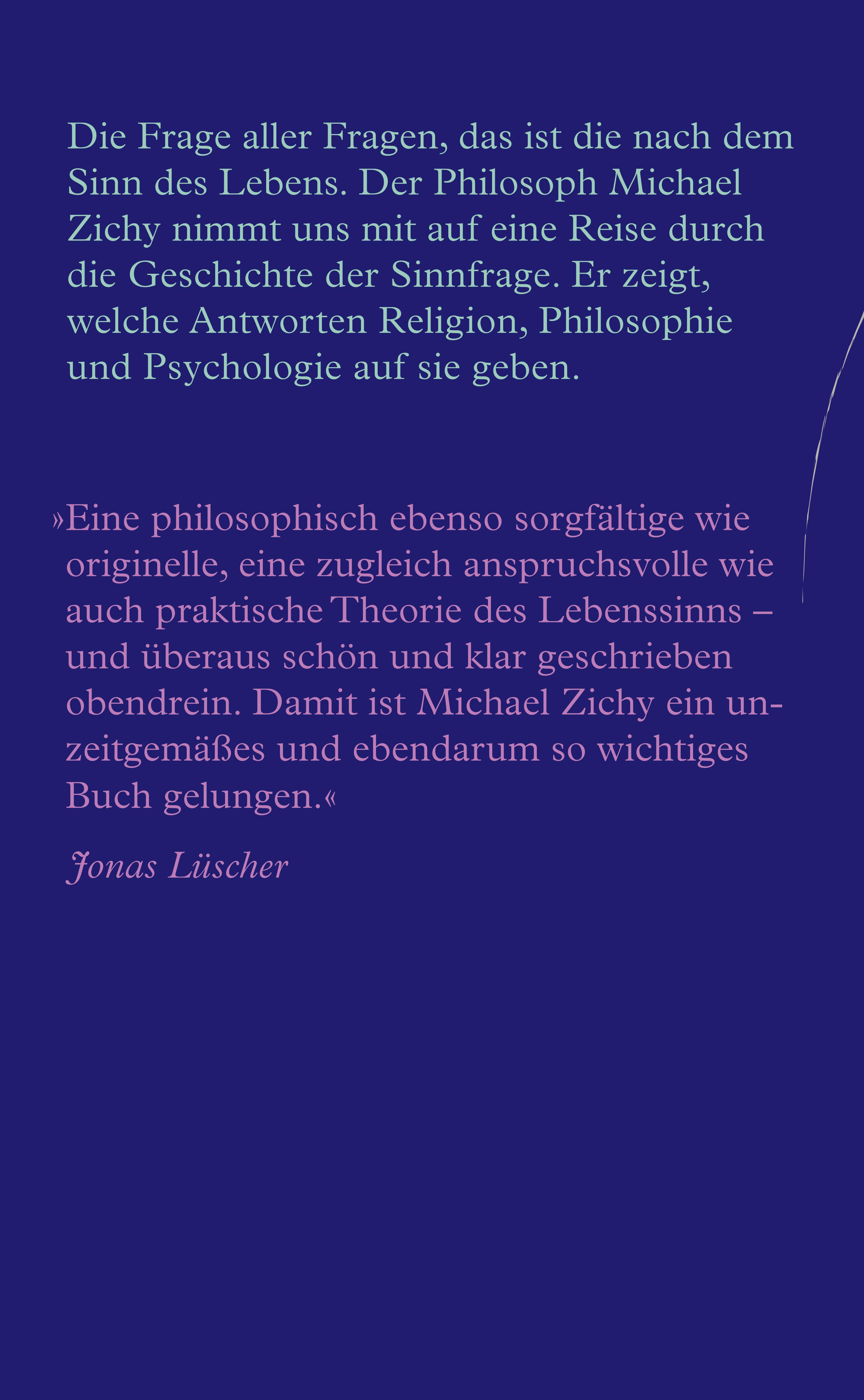 Was ist der Sinn des Lebens? Seit Jahrtausenden stellen sich Menschen diese Frage, und doch hat sie in wissenschaftlichen Kreisen keinen sonderlich guten Ruf: zu schwierig und zu subjektiv sei sie, zu beliebig und unseriös, aber vor allem: unbeantwortbar. In seinem ebenso grundlegenden wie zugänglichen Buch zeigt der Philosoph Michael Zichy, dass das Gegenteil der Fall ist. Die Frage nach dem Lebenssinn hat neben ihrer persönlich-existenziellen nämlich eine eminent politisch-gesellschaftliche Dimension, die bislang unbeachtet geblieben ist. Das verleiht ihr große Aktualität und Dringlichkeit. Und sie lässt auch eine klare Antwort zu!