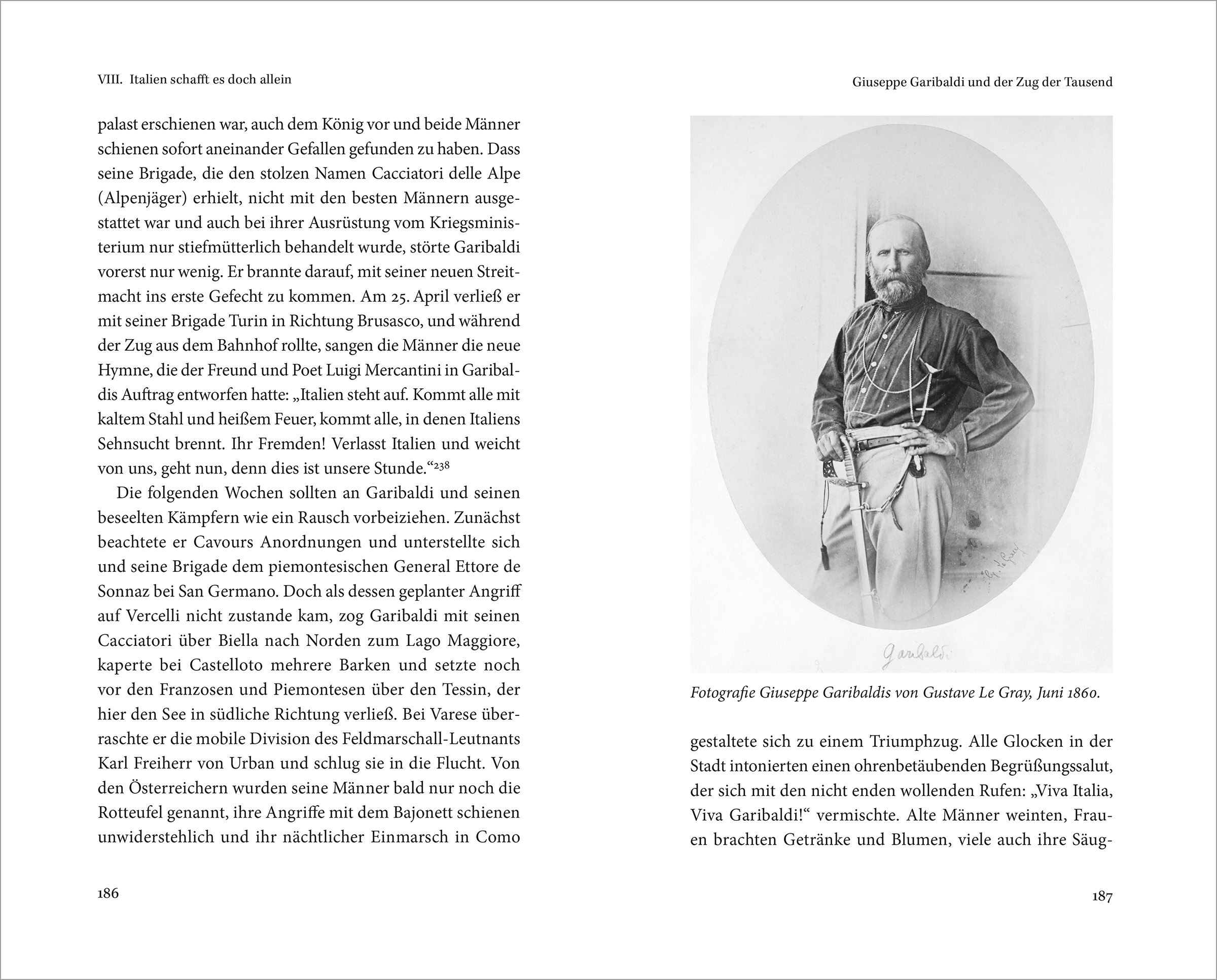 Klaus-Jürgen Bremm schildert die dramatischen Ereignisse, die aus der zersplitterten Apennin-Halbinsel den Nationalstaat Italien werden ließen, Garibaldis »Zug der Tausend« 1860, die Schlachten vornehmlich gegen die Truppen des österreichischen Kaiserreichs bis hin zur Einnahme Roms 1870. Damit war Rom die Hauptstadt des neuen Königreichs Italien.
