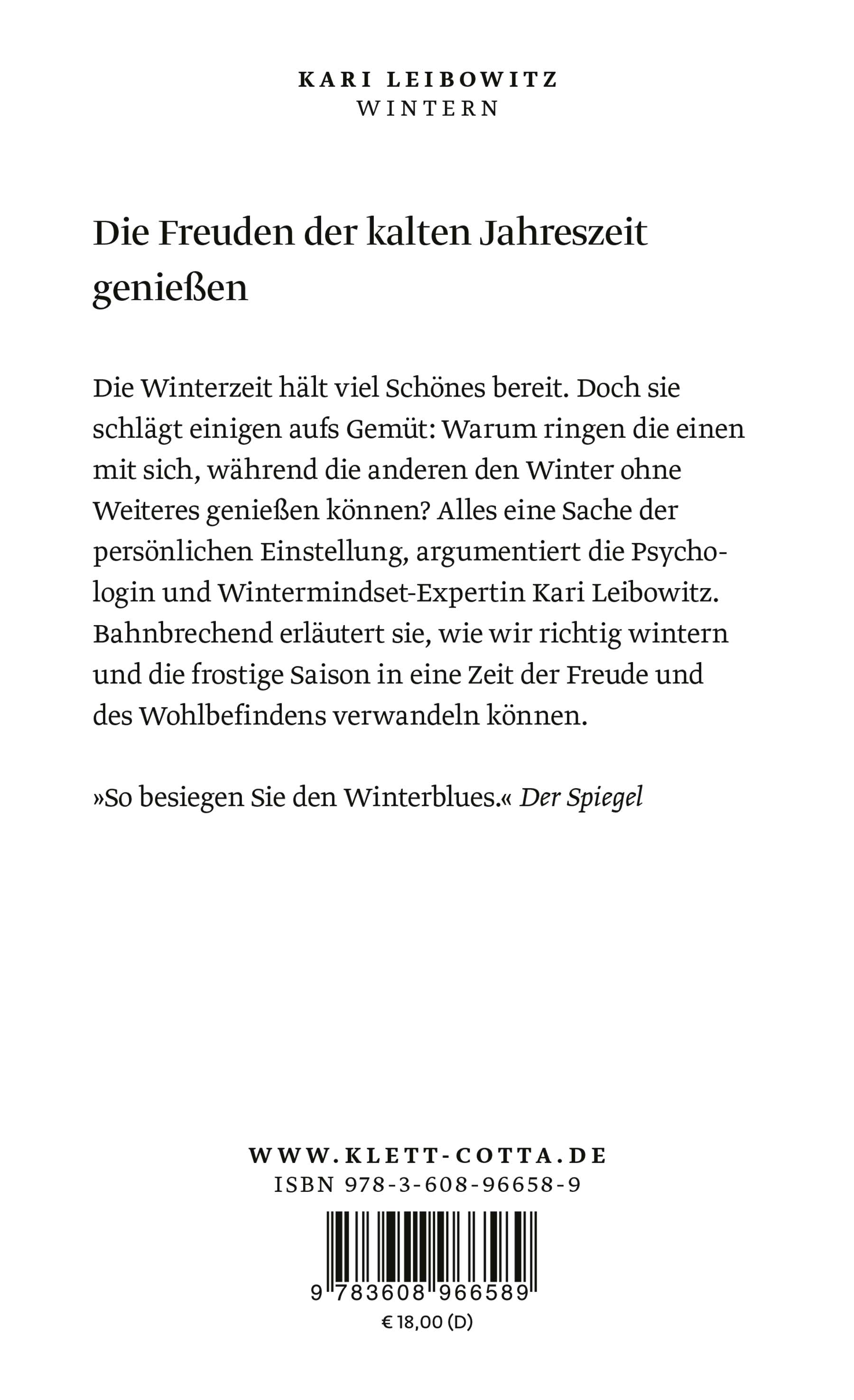 Die Winterzeit hält viel Schönes bereit. Doch sie schlägt vielen aufs Gemüt: Warum ringen die einen mit sich, während die anderen den Winter ohne Weiteres genießen können? Alles eine Sache der persönlichen Einstellung, argumentiert die Psychologin und Wintermindset-Expertin Kari Leibowitz. Bahnbrechend erläutert sie, wie wir richtig wintern und die frostige Saison in eine Zeit der Freude und des Wohlbefindens verwandeln können.