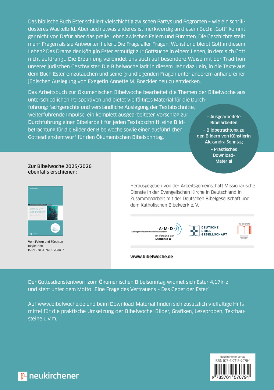 | Schlagworte | Auslegungen • babylonische Gefangenschaft • Bibelarbeiten • Bibelgespräch • Bibelwochenmaterial • Christliche Bücher • Ester • Esther • Gemeindearbeit • Gemeindepraxis • Gottesdienstvorbereitung • Gruppenarbeit • Impulse • liturgische Bausteine • Materialien • Ökumenische Bibelwoche • Ökumenischer Bibelsonntag |