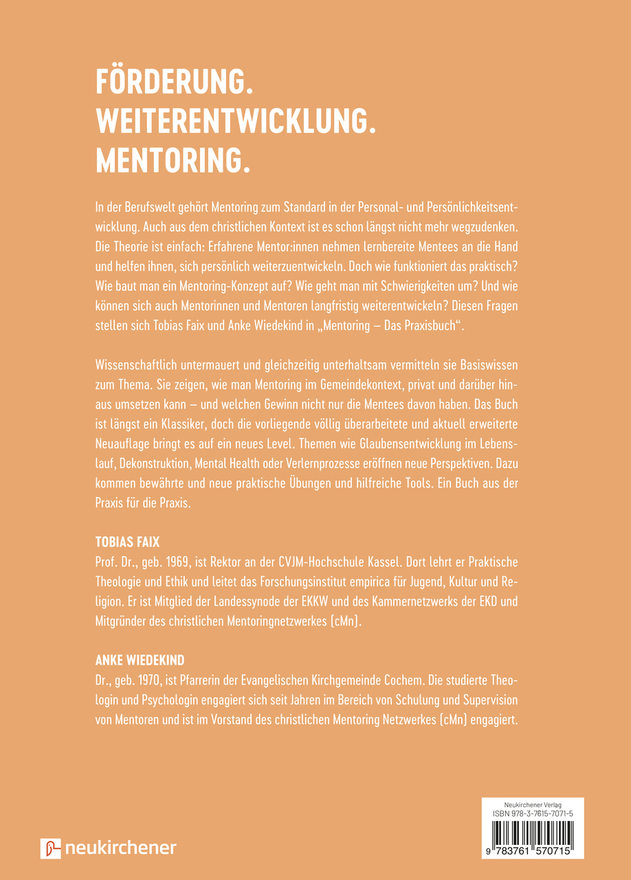 Für diese Ausgabe wurde das beliebte Standardwerk komplett überarbeitet und aktualisiert, mit neuen Übungen sowie aktuellen Tipps und Links versehen und um neue Themen und Aspekte erweitert (z.B. Mental Health, Resilienz & Mentoring, Prävention, geistlicher Missbrauch und sexuelle Gewalt, Dekonstruktion & Mentoring u.v.m).