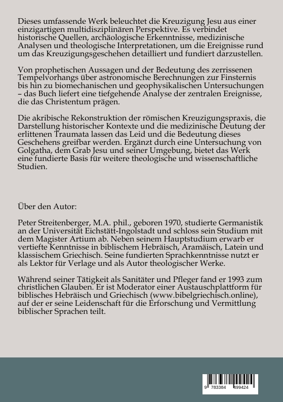 Nach einem abgeschlossenen Studium und der Anerkennung als Dipl.-Sozialpäd.(FH) konnte Peter Streitenberger (Jahrgang 1970) ein Zweitstudium des Faches Germanistik an der Universität Eichstätt-Ingolstadt als Magister Artium abschließen. Im Zuge seines Studiums konnte er akademische Abschlüsse im Fach biblisches Hebräisch und Studien zu Aramäisch ablegen. Daneben konnte er im Gymnasium bzw. in der Universität Latein und klassisches Griechisch erlernen und Prüfungen in diesen Fächern ablegen. Seit vielen Jahren moderiert er die Austauschplattform für biblisches Hebräisch und Griechisch (www.bibelgriechisch.online). Er arbeitet für Verlage als Lektor und ist selbst auch als Autor tätig; eine Liste seiner Veröffentlichungen kann bei ihm angefordert werden oder einige unter www.bibelgriechisch.online abgerufen werden.