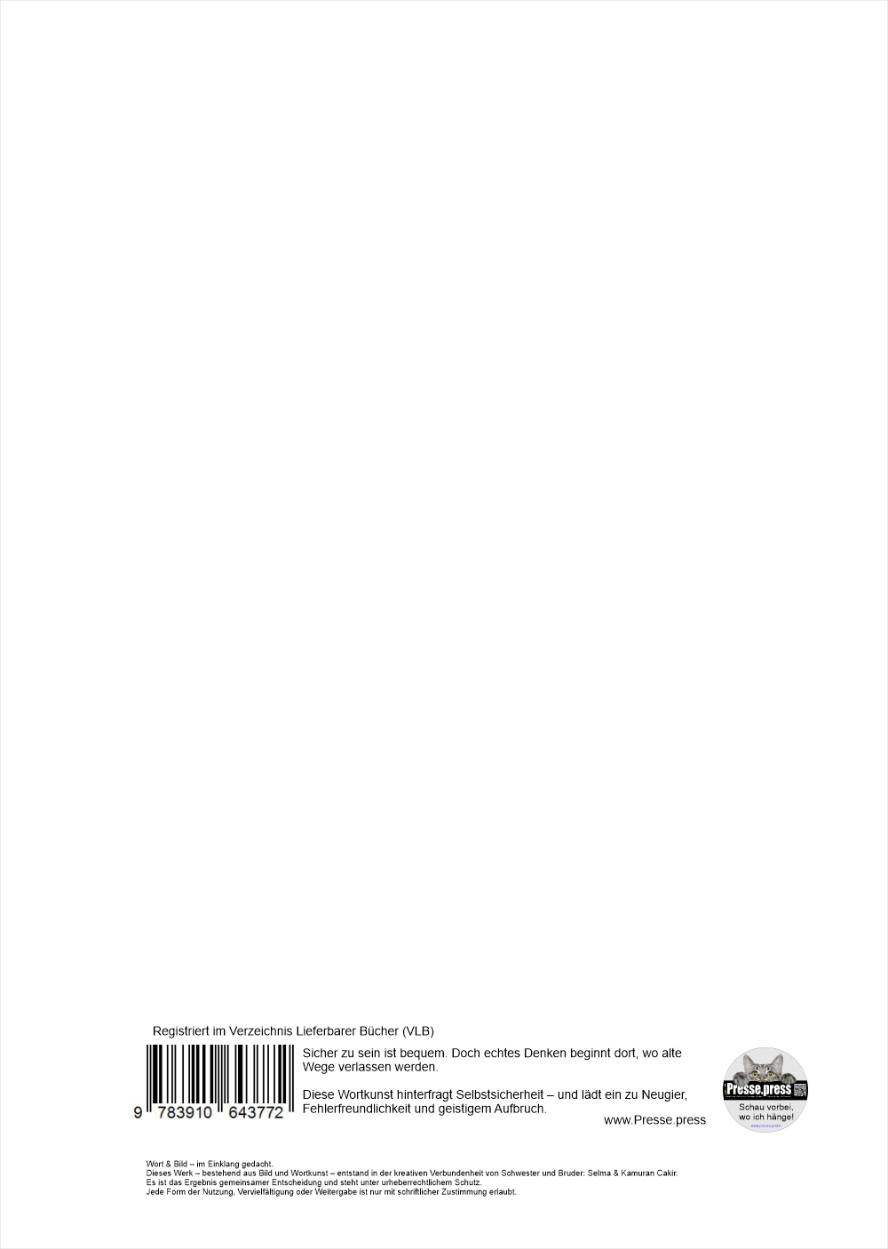 Wort & Bild – im Einklang gedacht. Dieses Werk – bestehend aus Bild und Wortkunst – entstand in der kreativen Verbundenheit von Schwester und Bruder: Selma & Kamuran Cakir. Es ist das Ergebnis gemeinsamer Entscheidung und steht unter urheberrechtlichem Schutz